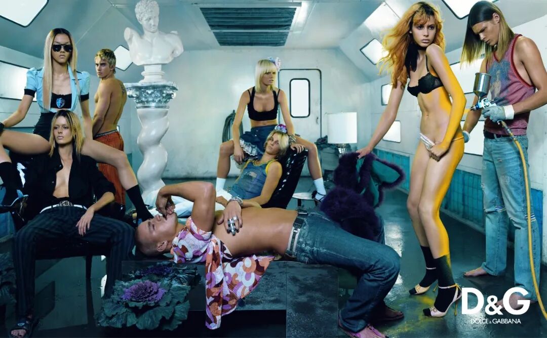 牛仔裤的受欢迎程度在千禧年前后达到顶峰。不仅有金童玉女Justin Timberlake和小甜甜布兰妮一起身着全身牛仔Look的情侣装一起走红毯,那时还有Dolce & Gabbana、Emporio Armani和DSquared的广告大片将镜头对准身穿牛仔裤的男士。展示着赤裸好身材的他们总有辣妹相伴,并告诉观众,穿上我们的牛仔裤,你也会享此艳福……随后Rag & Bone、R13和Amiri等设计师品牌的创立,都在一开始吃到了牛仔裤的红利。