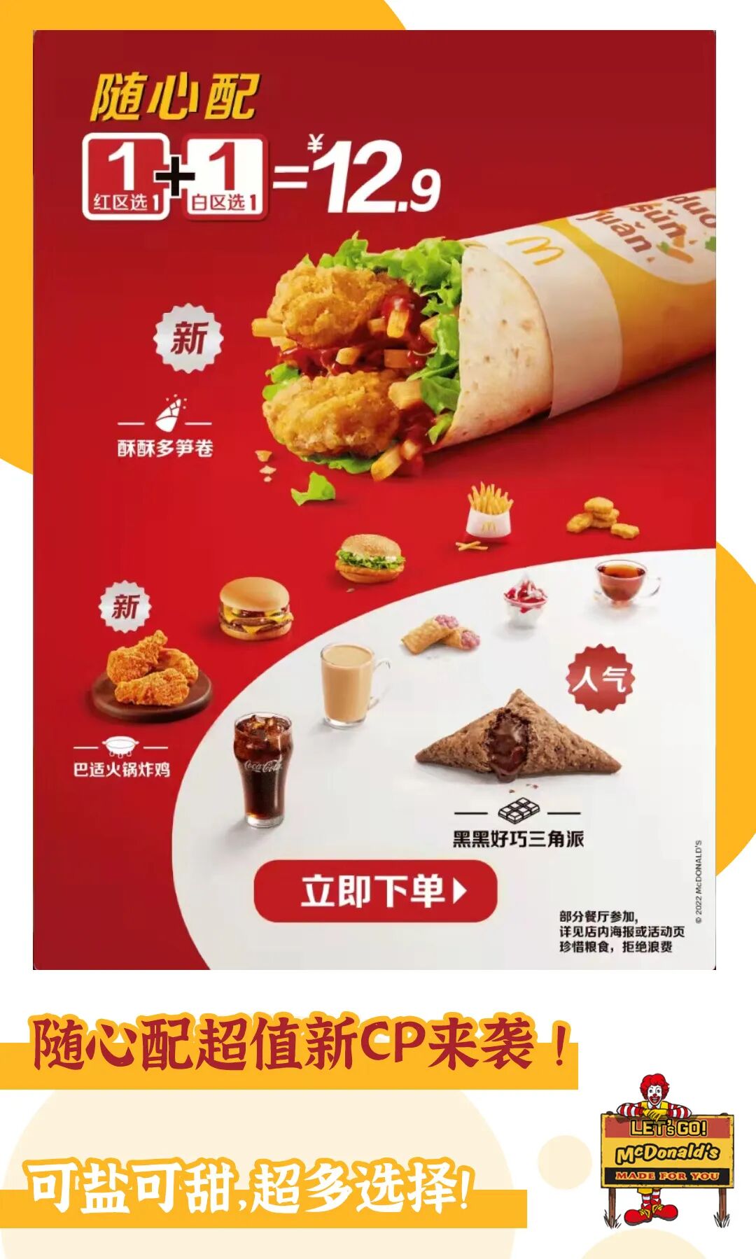 对标肯德基的“疯四文学”,麦当劳这两年也又推出相应的优惠策略,如13.5元的麦麦脆汁鸡买一送一,19元起的三件套随心搭等等。