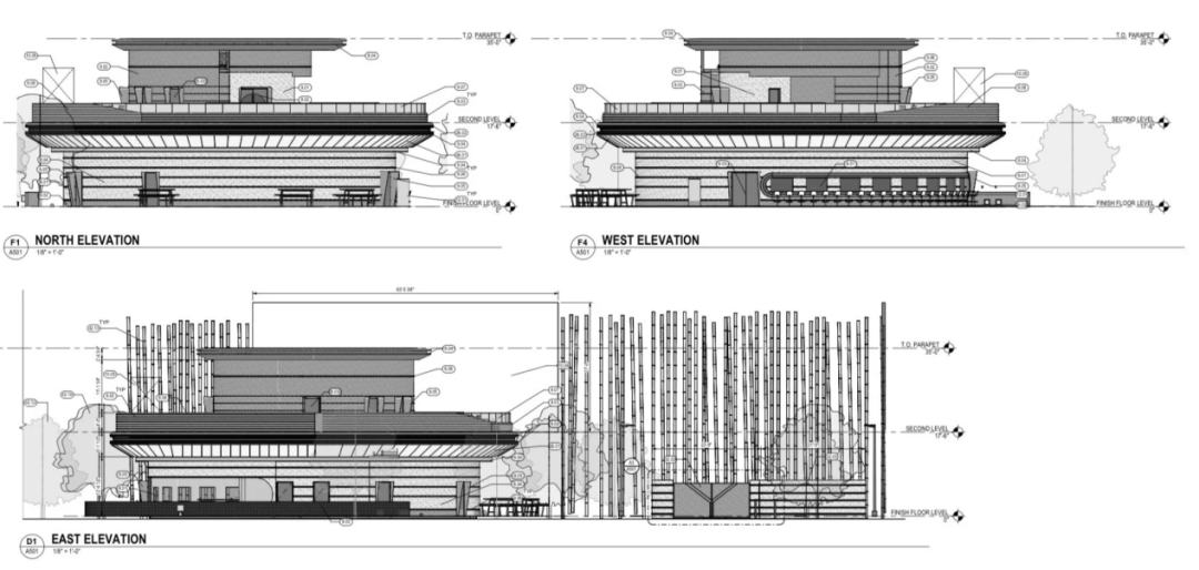 根据特斯拉提交的设计申请资料来看,这家餐厅相当有意思,可以开车进入,有影院有充电桩貌似还有“酒吧”。