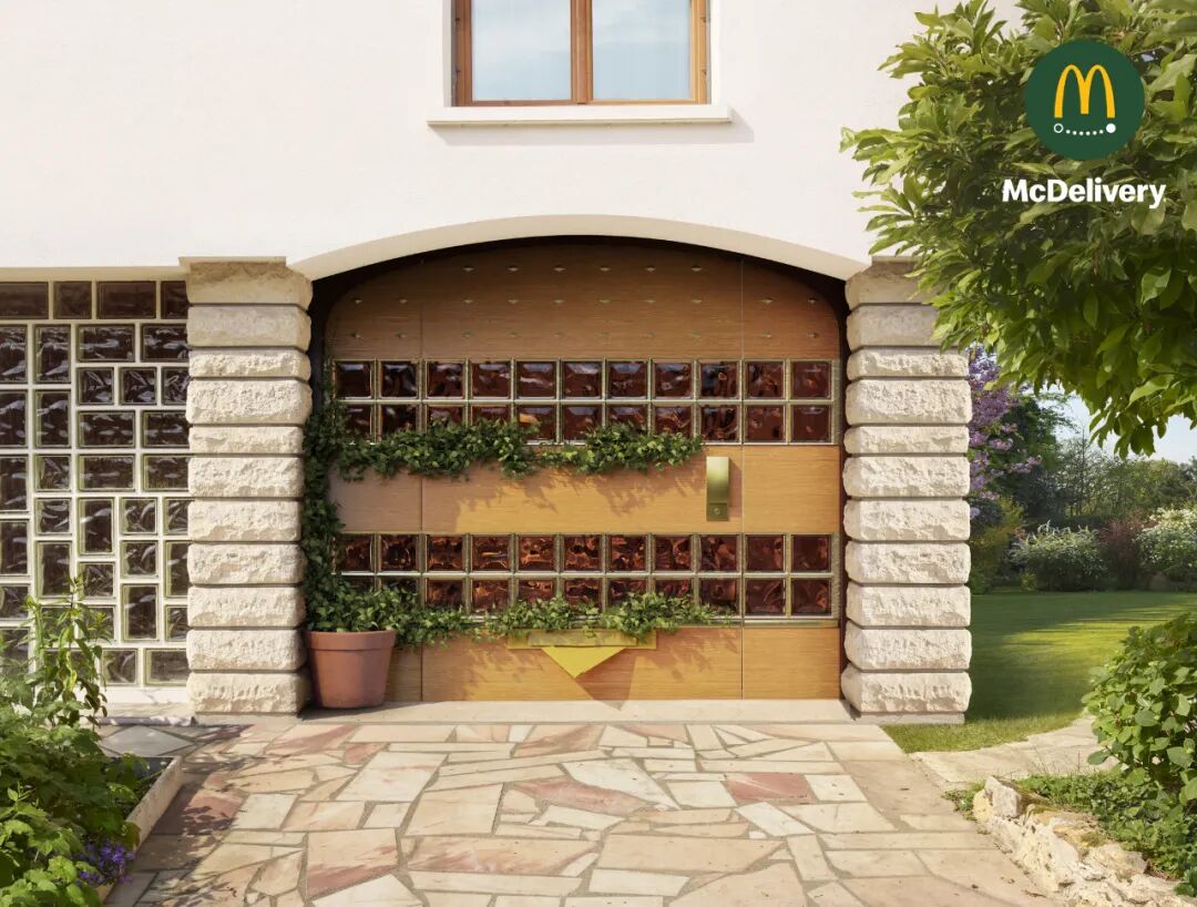 巴黎TBWA团队以巧妙的设计将冰淇淋、薯条和汉堡融入各种建筑物的大门,通过丰富的想象力引人注目,以此强调麦当劳的送货上门服务。