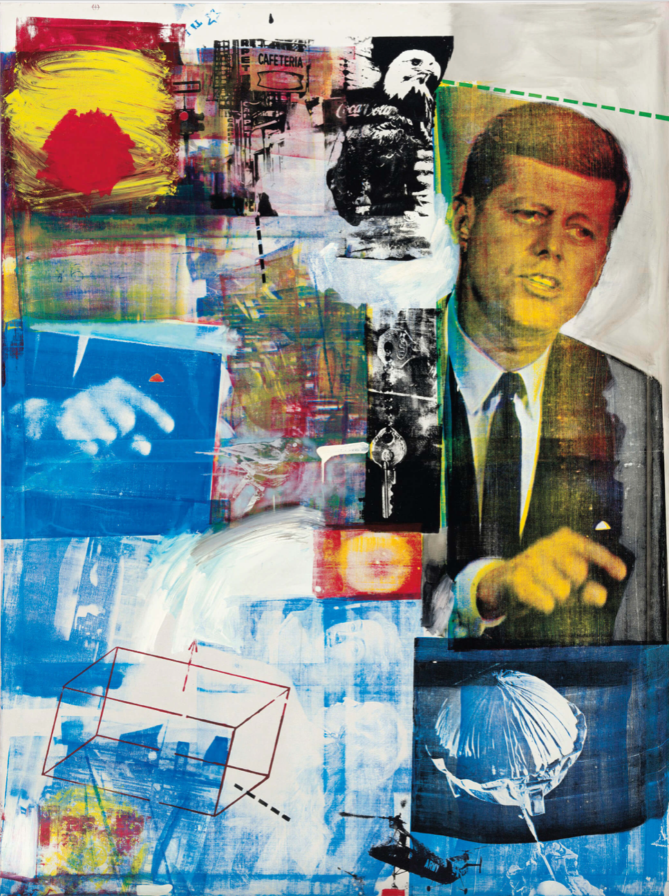 2. 《水牛II》创作于1964年,正值劳森伯格名气的顶峰,同一年他获得威尼斯双年展金狮奖,作品被人看作是抽象表现主义和波普艺术之间的桥梁。画上独特的美国形象——总统辩论中的肯尼迪、太空竞赛、秃鹰和可口可乐标志,都代表了美国历史的时代印记。