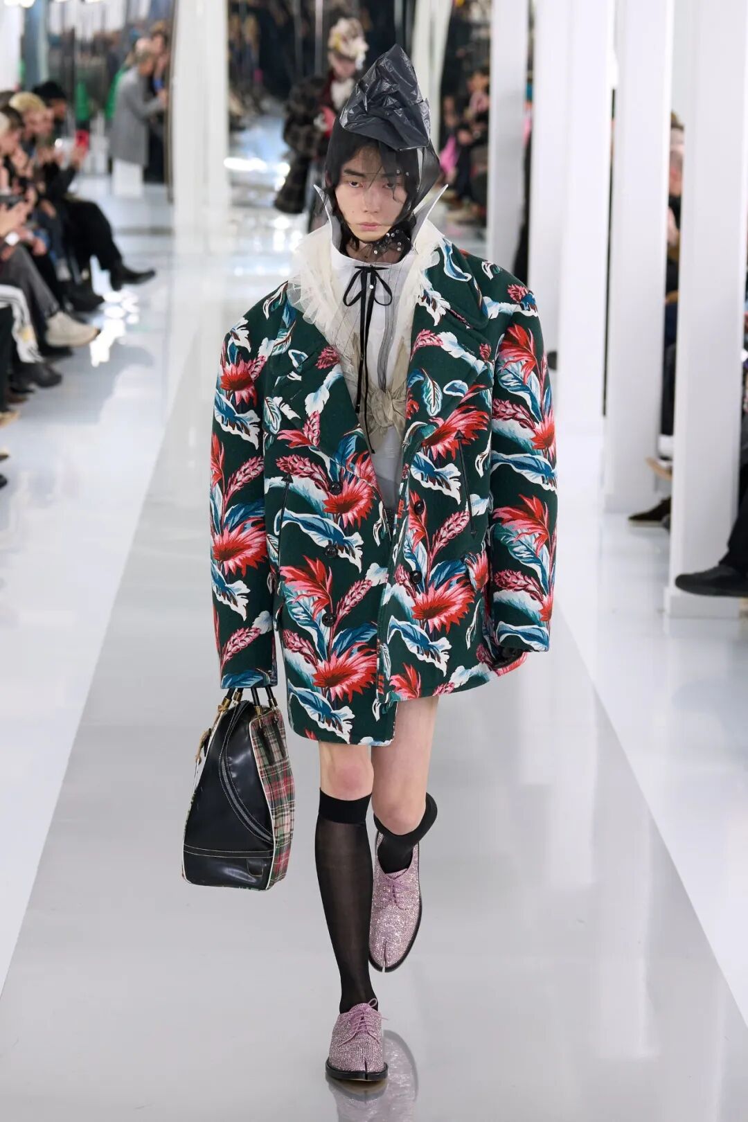 这是一场非常个人化的朋克浪漫“Co-Ed”系列;就像一群年轻的 Galliano 角色,表达了John Galliano对于亚文化的激烈精神以及迫切的狂欢。他将其描述为“有良心的革命者”。
