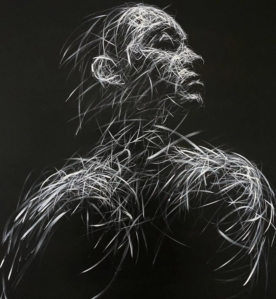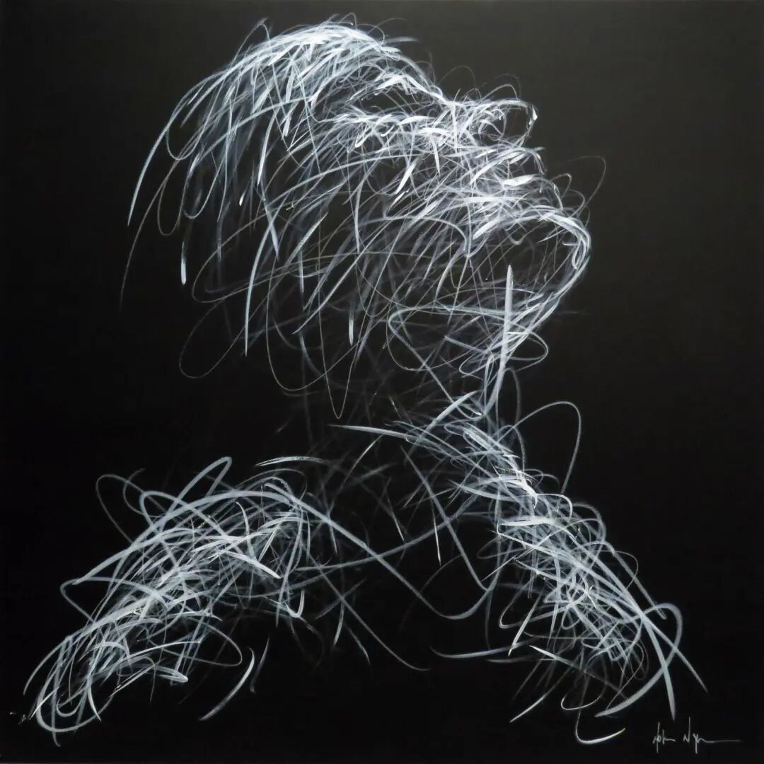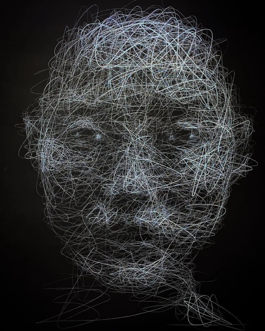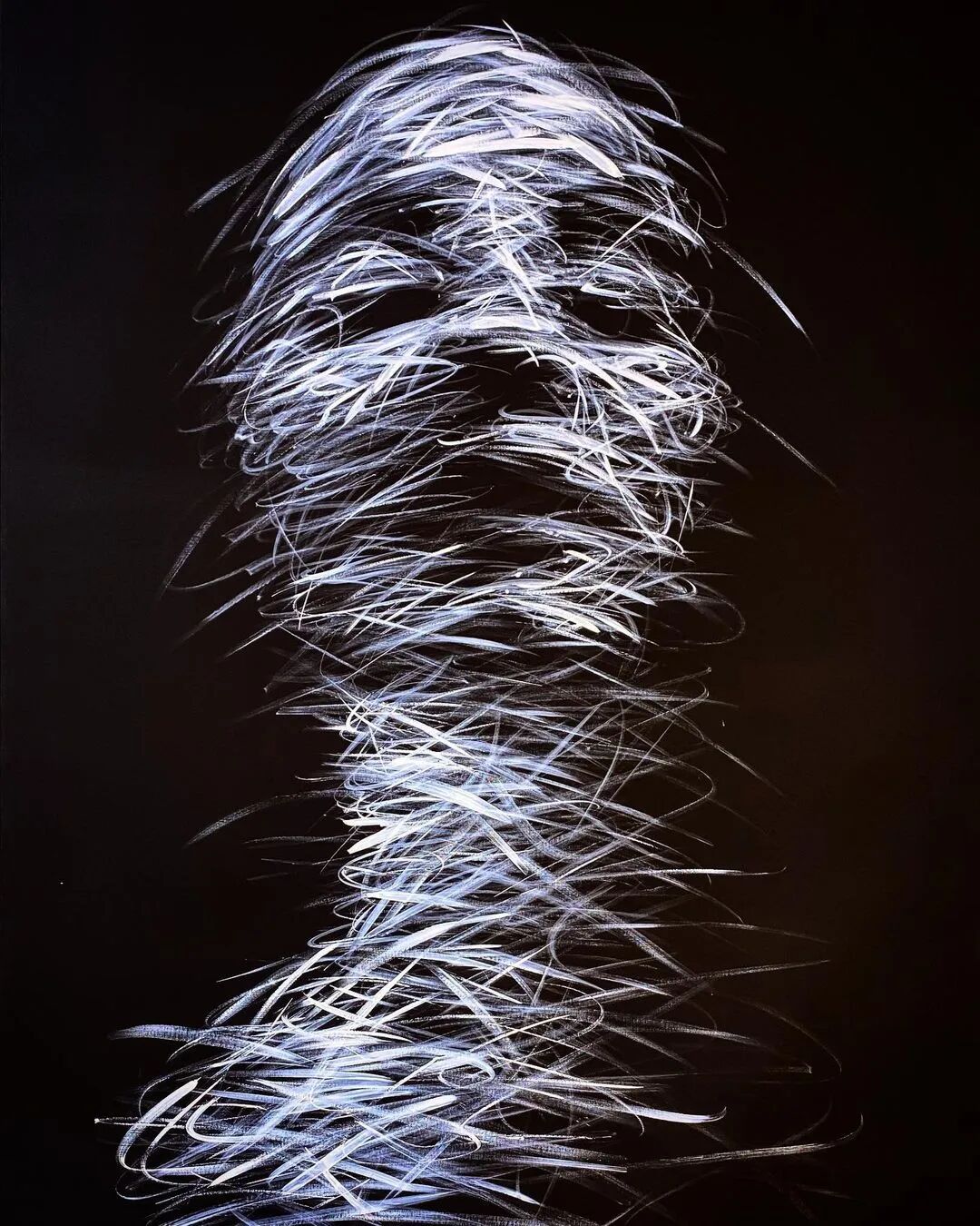 他说:“我在画布上表达自己,也在时时感受表达之后'新边界'的呼唤。我的画是由笔触线条与生命线条交叉累积的涂鸦,每条线都是一道生活的轨迹,叠加与缠绕之后,所形成的不仅仅是一张脸,更是一组饱含微妙意图与崇高姿态的心灵景观。”