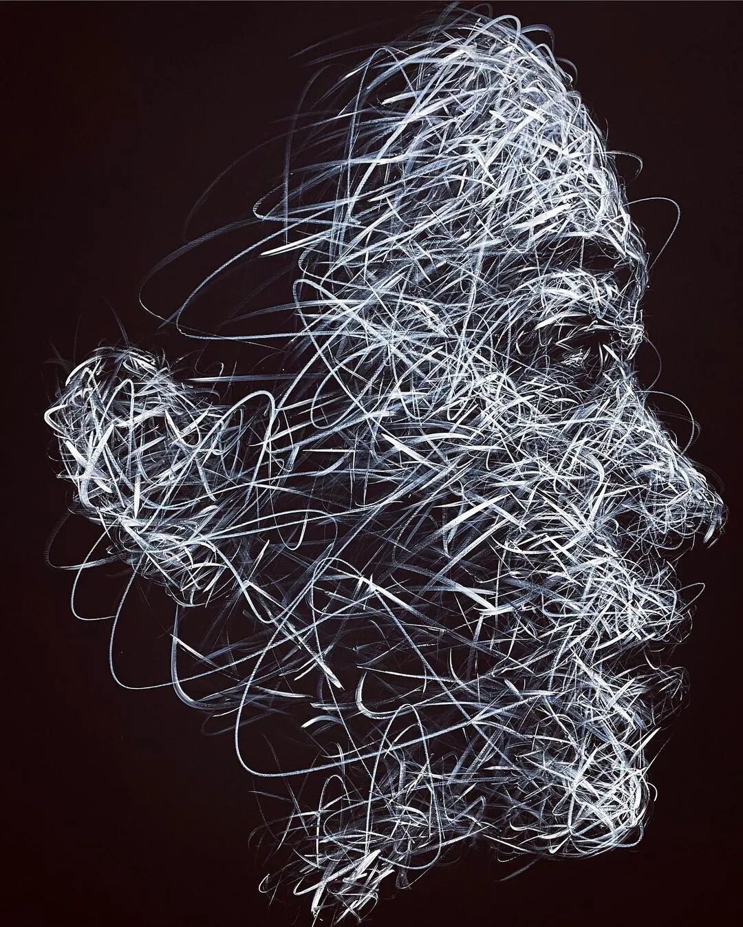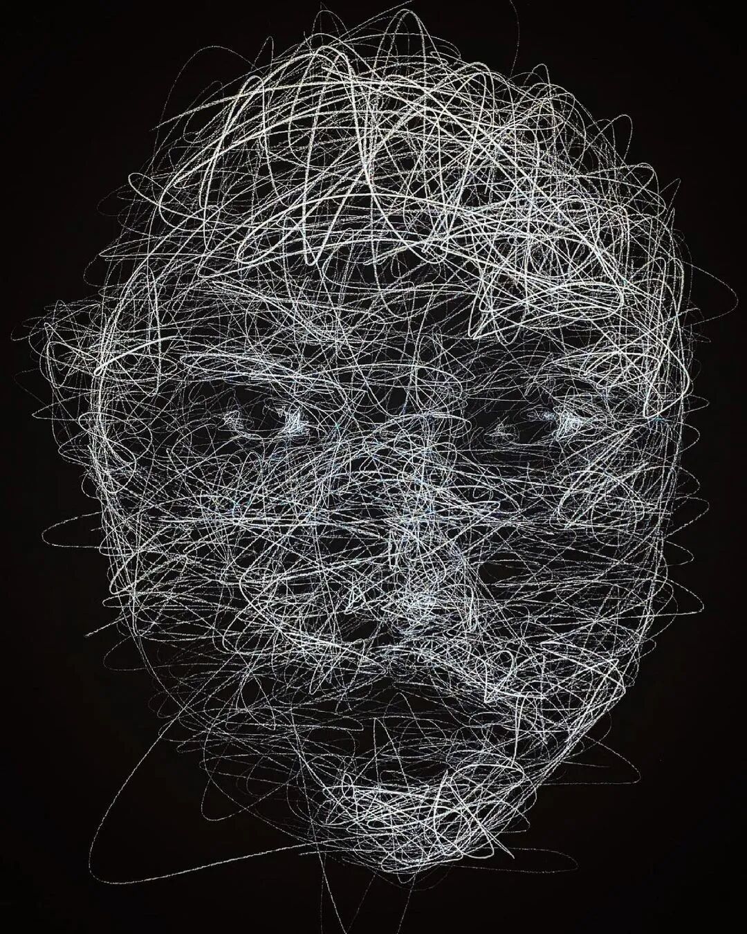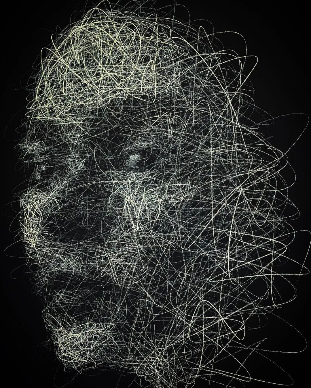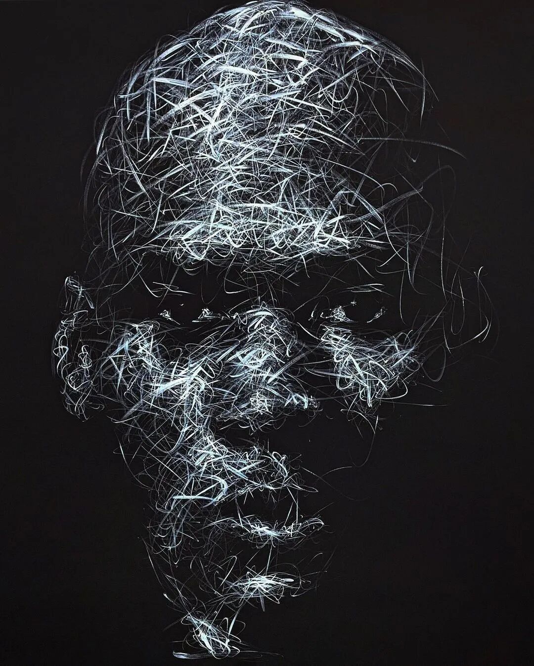 他说:“我在画布上表达自己,也在时时感受表达之后'新边界'的呼唤。我的画是由笔触线条与生命线条交叉累积的涂鸦,每条线都是一道生活的轨迹,叠加与缠绕之后,所形成的不仅仅是一张脸,更是一组饱含微妙意图与崇高姿态的心灵景观。”