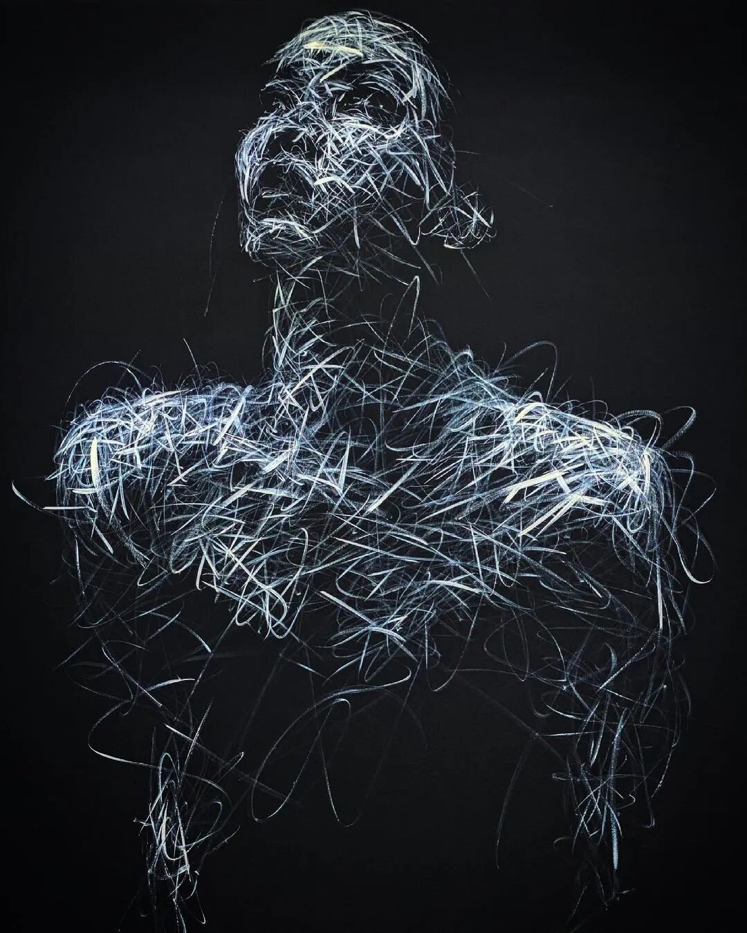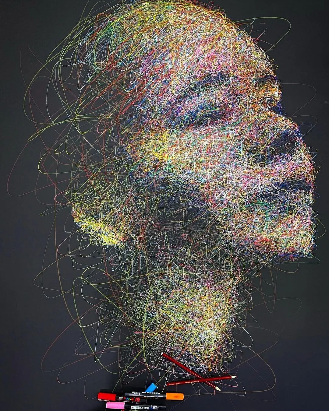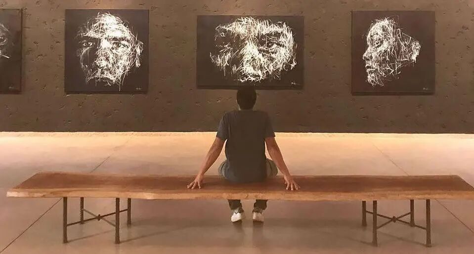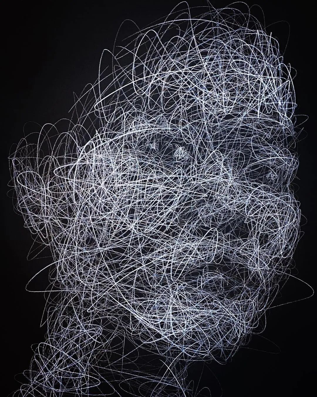 他说:“我在画布上表达自己,也在时时感受表达之后'新边界'的呼唤。我的画是由笔触线条与生命线条交叉累积的涂鸦,每条线都是一道生活的轨迹,叠加与缠绕之后,所形成的不仅仅是一张脸,更是一组饱含微妙意图与崇高姿态的心灵景观。”