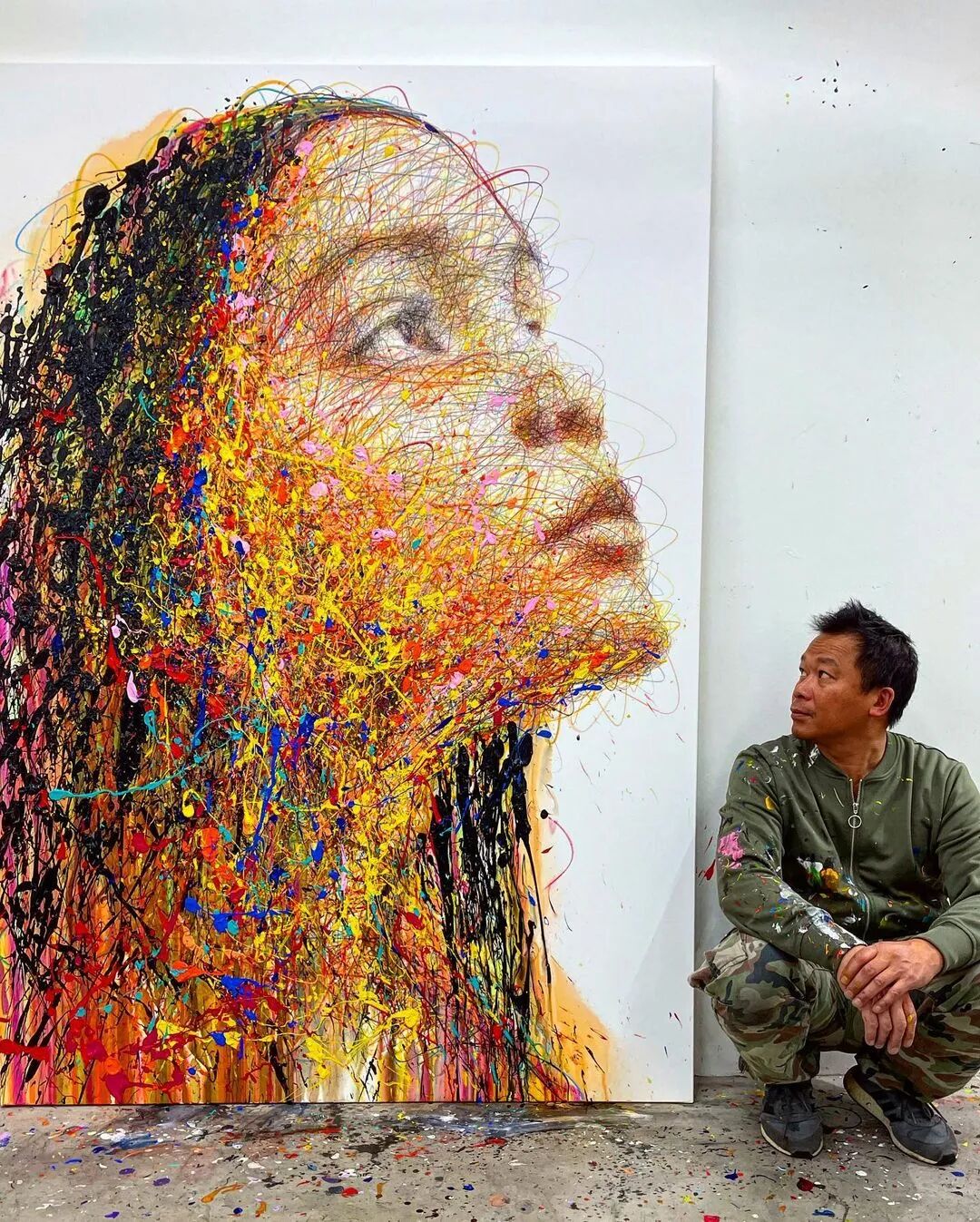 越南裔法国画家Hom Nguyen,于1972 年出生于巴黎,是一位自学成才的艺术家。他的母亲是一名船员,4岁时母亲因车祸瘫痪在床,一家人靠着微薄的残疾健康保险基金收入生活。2009年,他的母亲去世。此时还是鞋子推销员的Nguyen决定投身于绘画,而后作品屡屡展出,并于2021 年被授予法国国家功勋骑士勋章。
