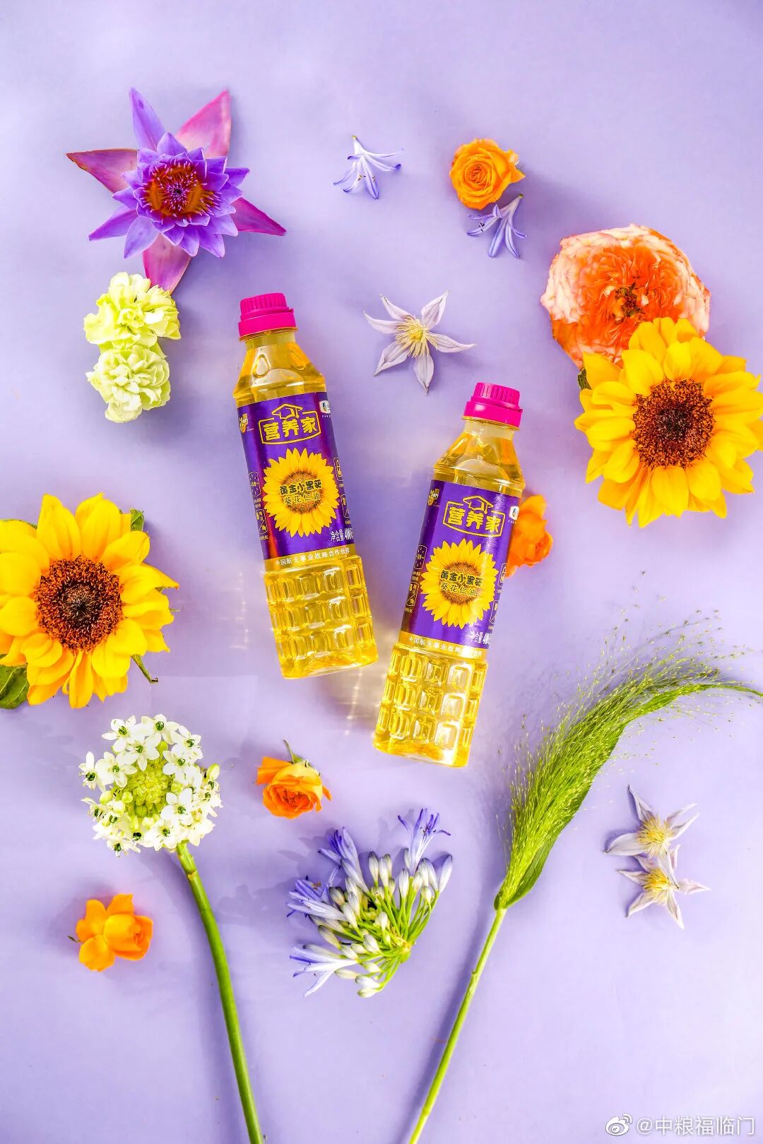以品牌主打的葵花籽油成分--向日葵为主角