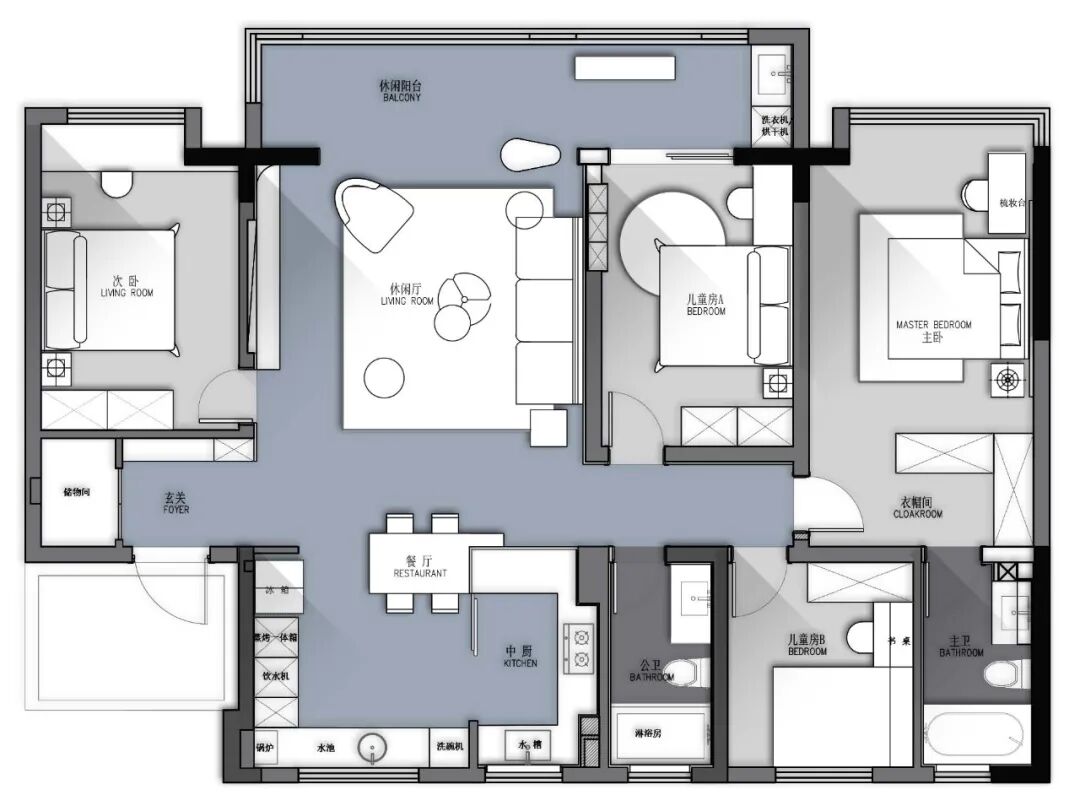 ② 原户型的餐厅功能区较小,不满足实际使用;