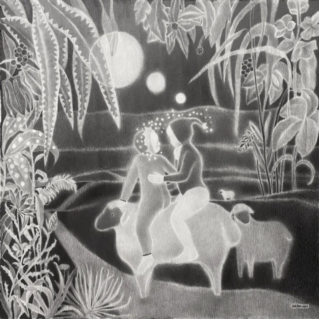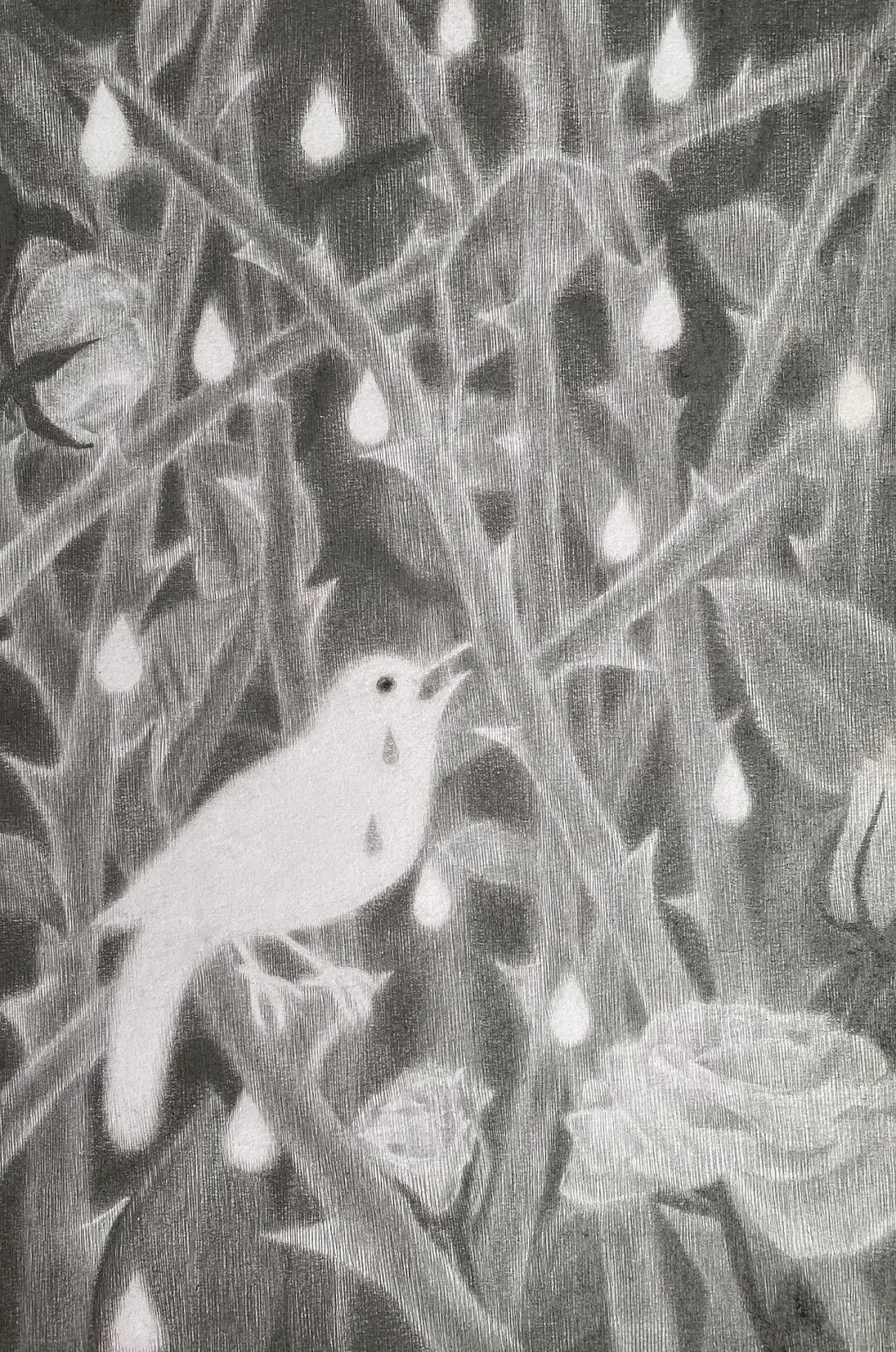 马君 夜莺与玫瑰 2022 纸本铅笔 25×20cm