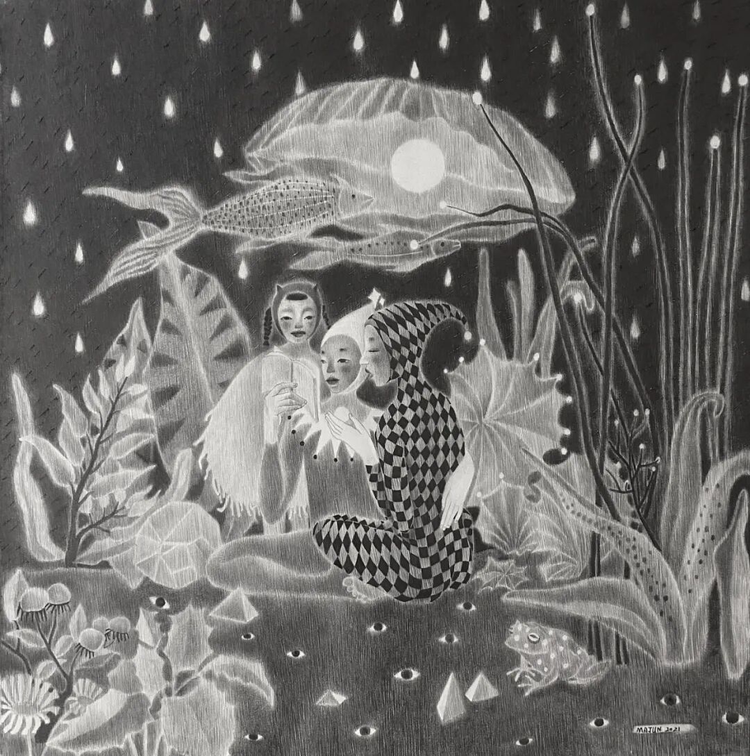 马君 读诗的雨夜 2021 纸本铅笔 50×50cm