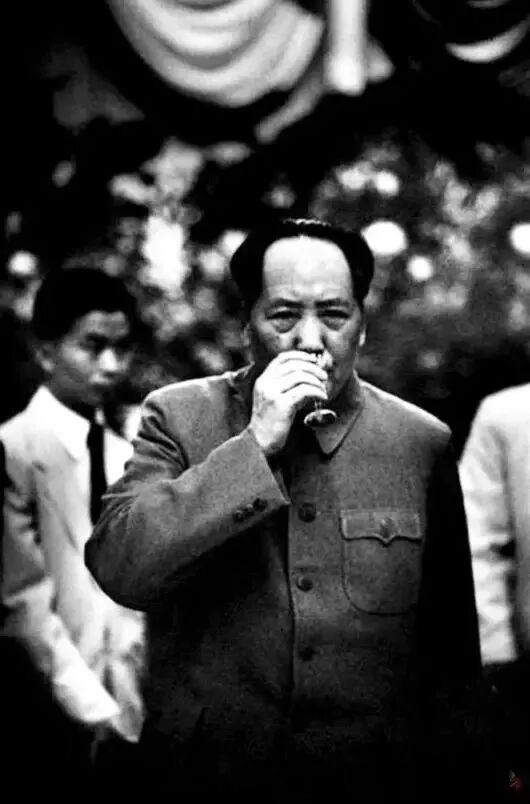 ▲ “1957年冬,我受邀请,去参加毛泽东在北京举行的一次晚宴,同时受邀的有600人。这次晚宴是在王府井大饭店的前庭举行,其间用过的平底酒杯现在一家国营商店里出售……作为现场唯一的外国记者,我被迫屈从于一项奇怪的禁令:不许对伟大领袖正面拍摄。然而,在这个特殊的夜晚,我还是成功地抓拍到了独家照片:毛主席正在饮一杯茅台酒,完全正面。” 事隔多年,还能感觉到他在讲述时的兴奋。