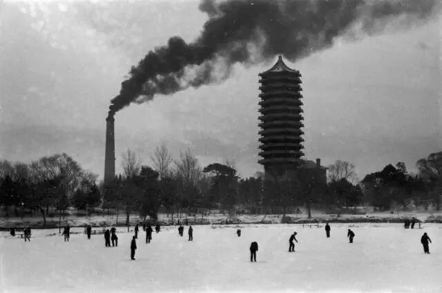 ▲ 1957年冬天,在王府井大街上,他敏感地将镜头对准了迎面的一位奇特的老贵妇,身披长至脚踝的黑色大氅,领口镶白色狐毛,手夹香烟,目光傲慢。在背景是一片工装的北京街头,老妇以这身装扮出场显得如此荒诞不真实,然而又像随时随地可能发生,也许就在某一个街角。