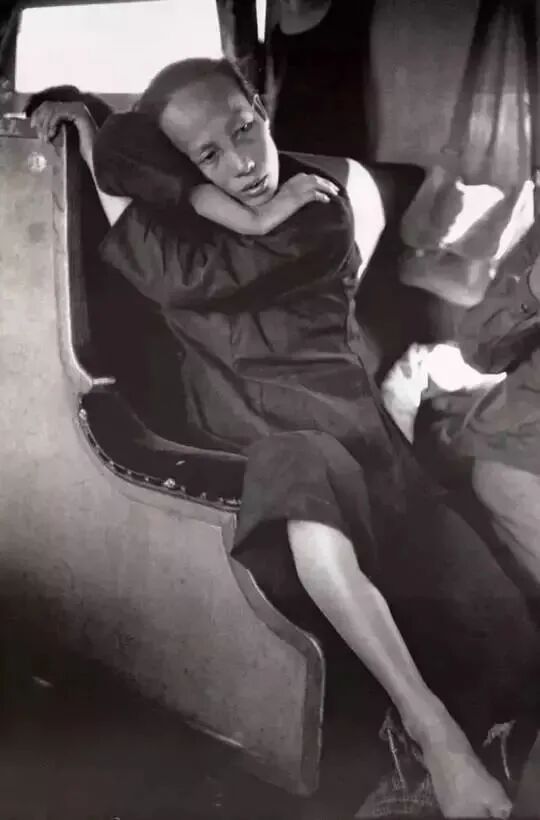 ▲“这是我在中国拍的第一张照片。这是 1956 年的年底,在从香港到广州的火车上,穿越边境时拍摄的。换言之,是我在从一个世界进入另一个世界时拍摄的。从所带的行李判断,这个身穿黑衣的妇女是个农民,虽然她那种成熟的优美让人觉得她是在城里生活的。人们看到的亚洲某些地方的人,是连一点人的尊严也没有的,他们往往处在一种完全被抛弃的状态,而这张照片立即完全改变了这种印象”,马克·吕布说。