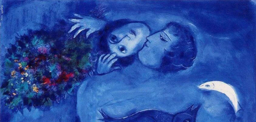 五年之后,一封来自故乡的信将夏卡尔唤回维捷布斯克,他与少年时的恋人贝拉结了婚。片刻的甜蜜与一生的理解,夏卡尔的创作中终于开始看到了溢于言表的喜悦之情。“只要一打开窗,她就出现在这儿,带来了碧空、爱情与鲜花。”1916年,他们的女儿伊达出生,她后来成了父亲的传记作者和研究学者。