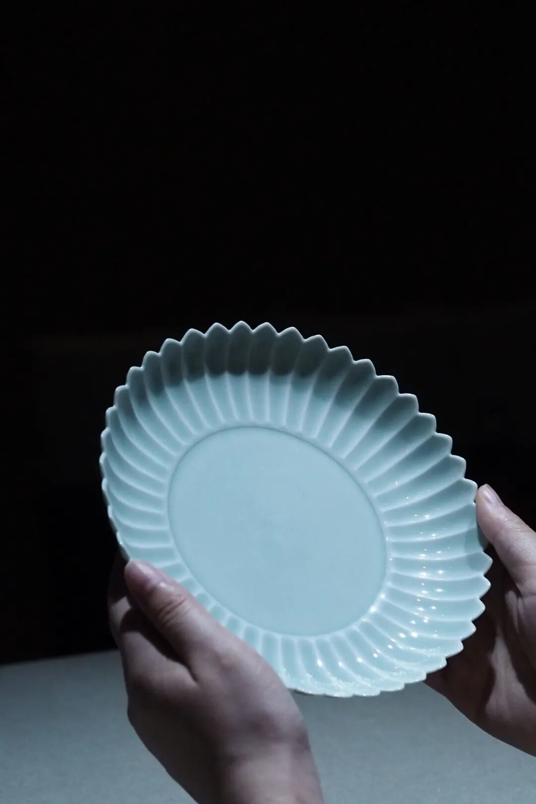 清雍正·粉青釉菊瓣盘