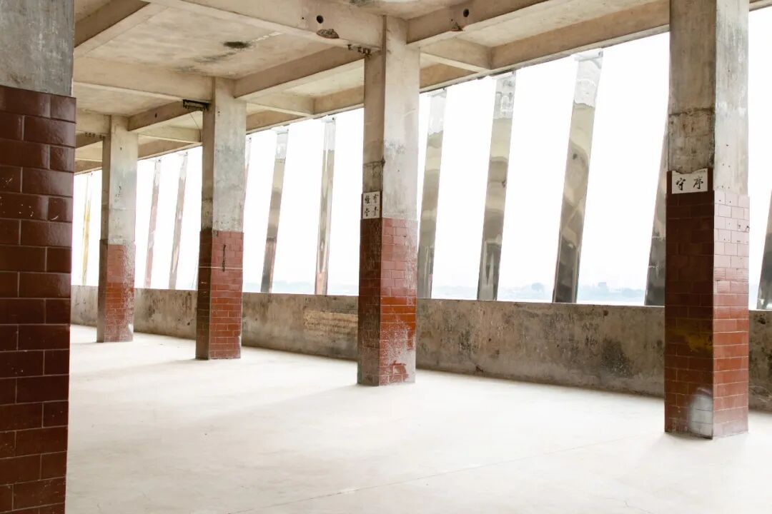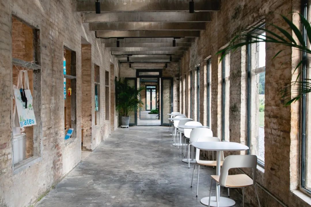 环岛骑行,一个屋顶长着一颗大榕树的联排红砖房吸引着我们的目光,这里是岛上一个村子的村口。走近细看,建筑内部空间被改造为了艺术节的服务站和展陈空间。于工作人员交流得知,这座建筑曾是一座蚕房,曾经的平沙岛,桑蚕渔农是主业。