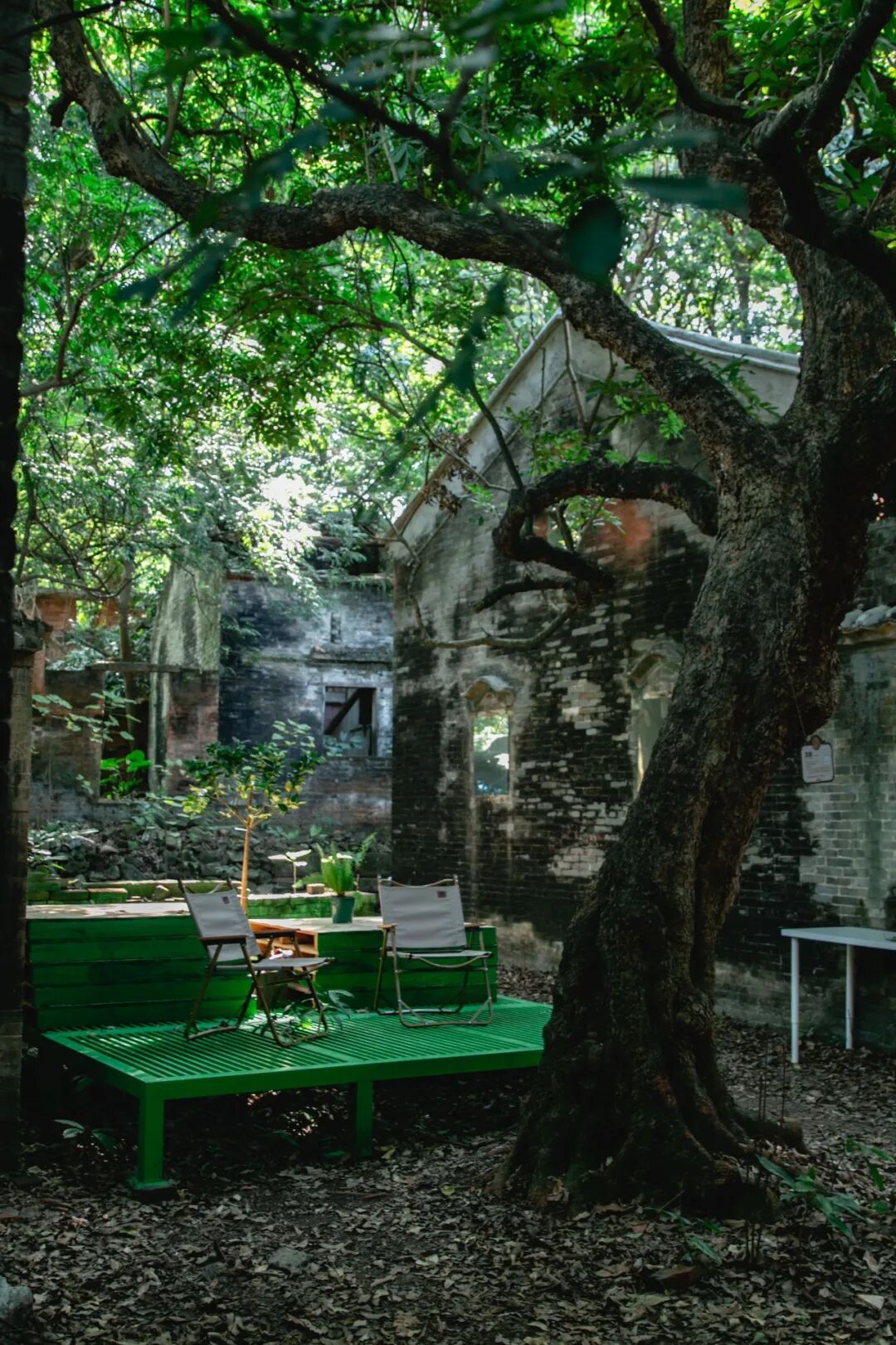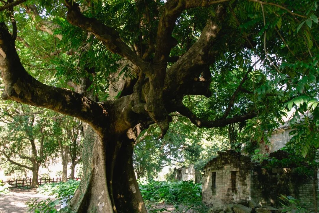 在凰岗村,探索的兴趣会更浓,因为在这里会有种废墟探秘的感觉。这座在西樵镇的地理位置上略显边远的古村遗址,自然在人类活动退场后的生长,让亲临现场的人们能够非常直观甚至有些震撼地体会到“大地艺术”四个字的力量。