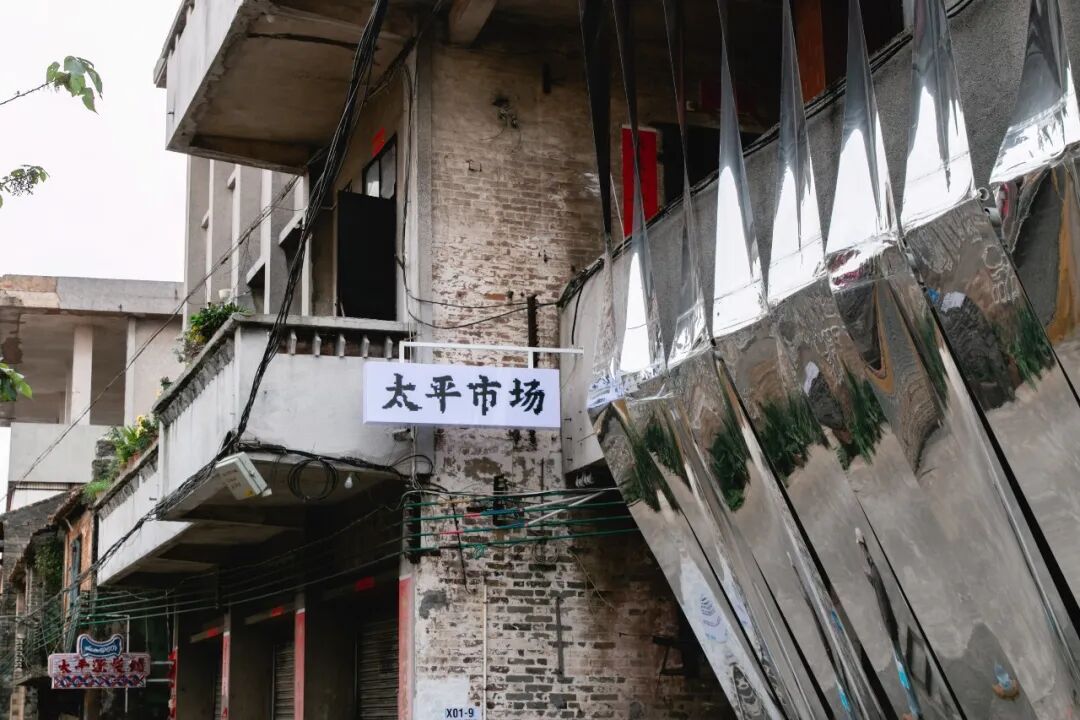 如果把视角从街上拉到远处去看太平墟,就会发现一栋被彩纱包起来的大楼十分显眼。这是建筑师马岩松创作的《时间的灯塔》,而那座大楼曾是太平墟最热闹的市场大楼,这座立于西江畔的大市场在昔日像慢慢运途中的灯塔,指引每个人回家的方向。