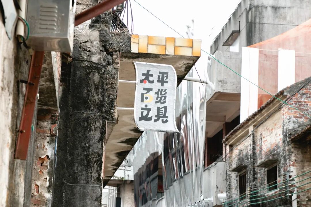 走在这条老街上,会看到一些明显不同于既有环境的招牌,这是由十几组艺术家的创作构成的一个集群艺术项目《字神的游戏-招牌计划》。艺术家们对太平墟老街的历史招牌进行再设计,将这些曾经的繁荣以艺术招牌的形式重现于当下的时空中。