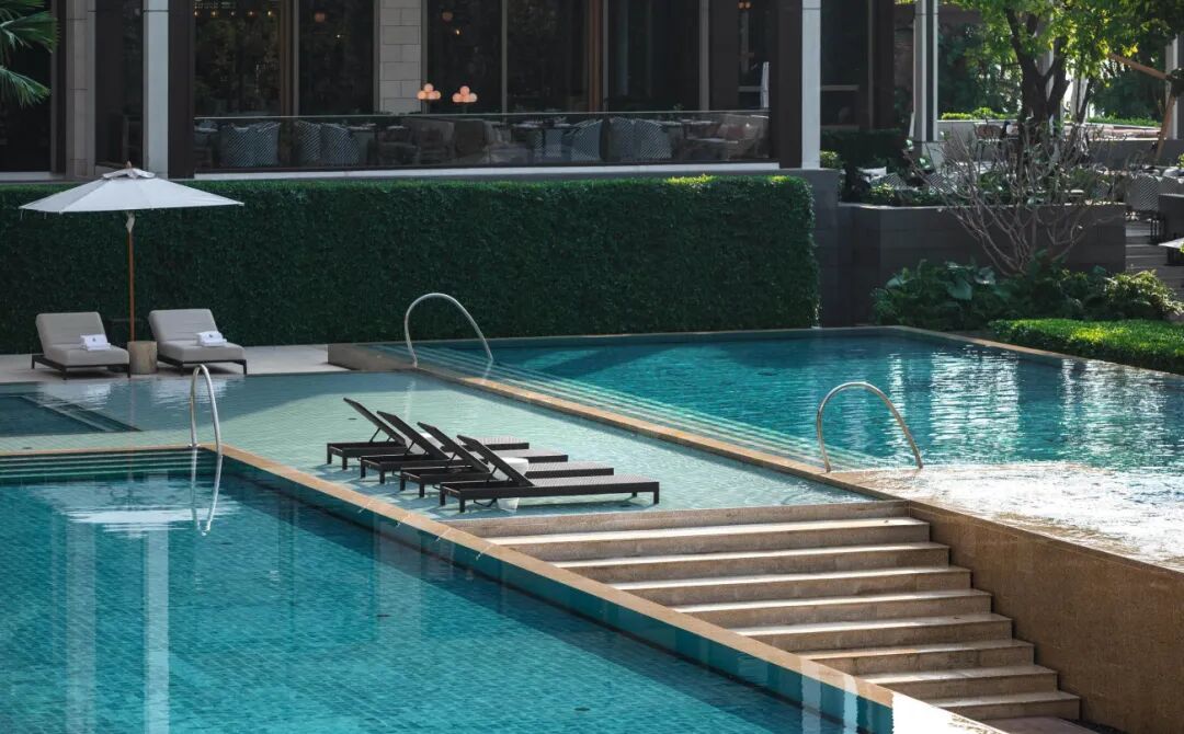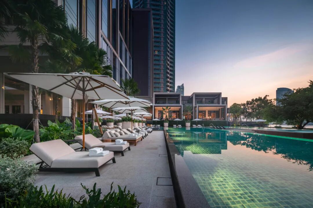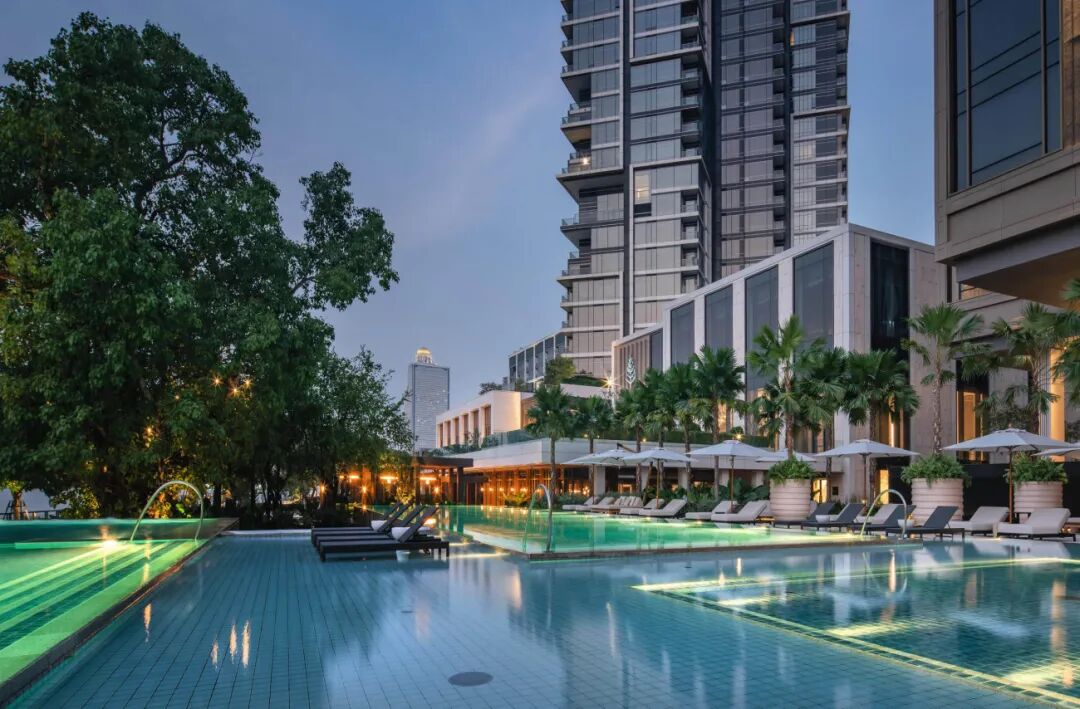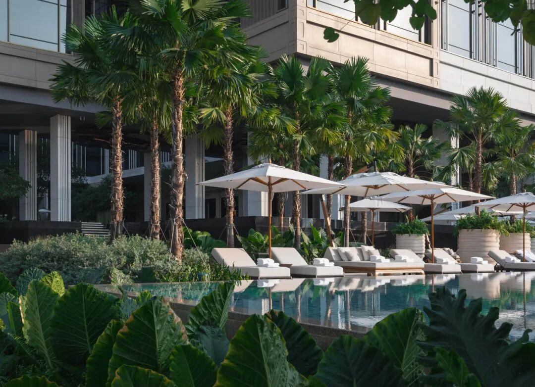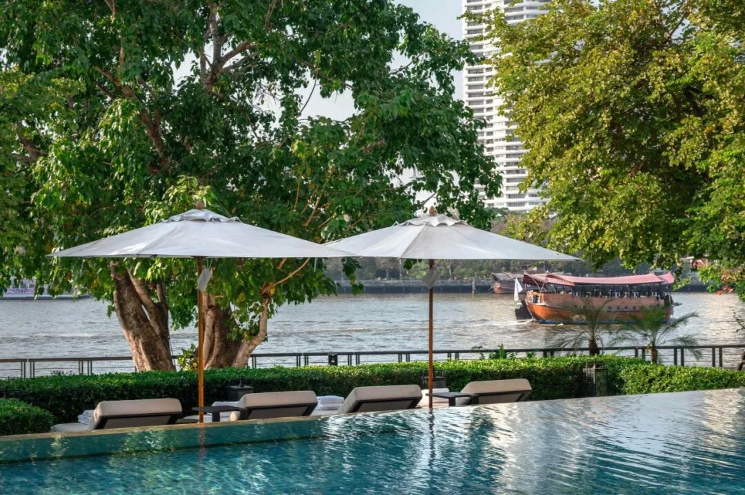 Thank to the preservation of the existing trees, Pool Terrace at Four Seasons Hotel Bangkok at Chao Phraya River is embraced by the lush greenery garden overlooking to the fascinating river view. Planting composition both existing trees in composition with the newly added trees creating the urban oasis setting along the legendary Chaophraya River.Also support for guest privacy and create the essence of Serenity outstandingly.