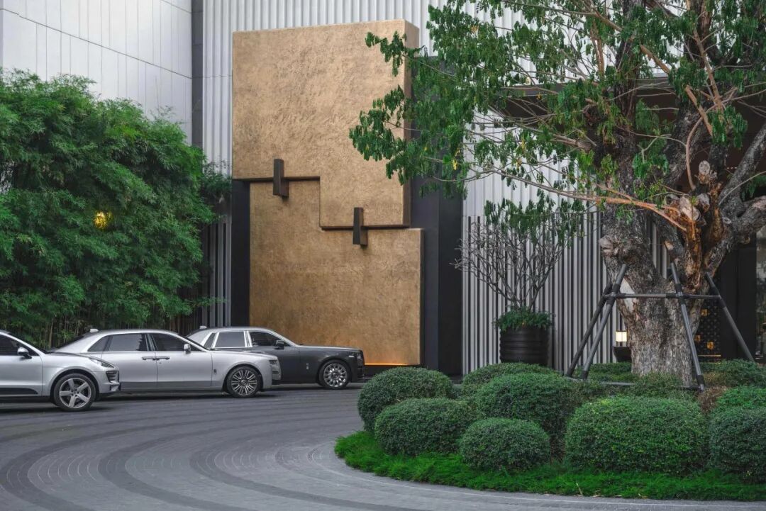 一棵本土特色雨树(Samanea Saman)伫立在门廊的中心,成为曼谷四季酒店落客区域的标志性景观元素。