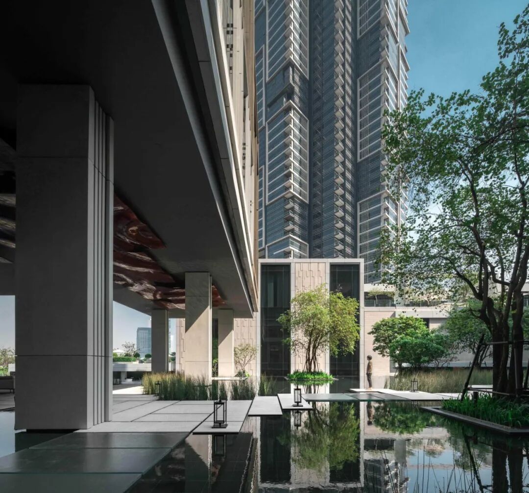 Meticulously embraced by simple layers of lush greenery in high relation with the preserved existing trees, the swimming pool, pool terraces and waterfront promenade elegantly mesmerize the riverside experiences with the essence of serenity.