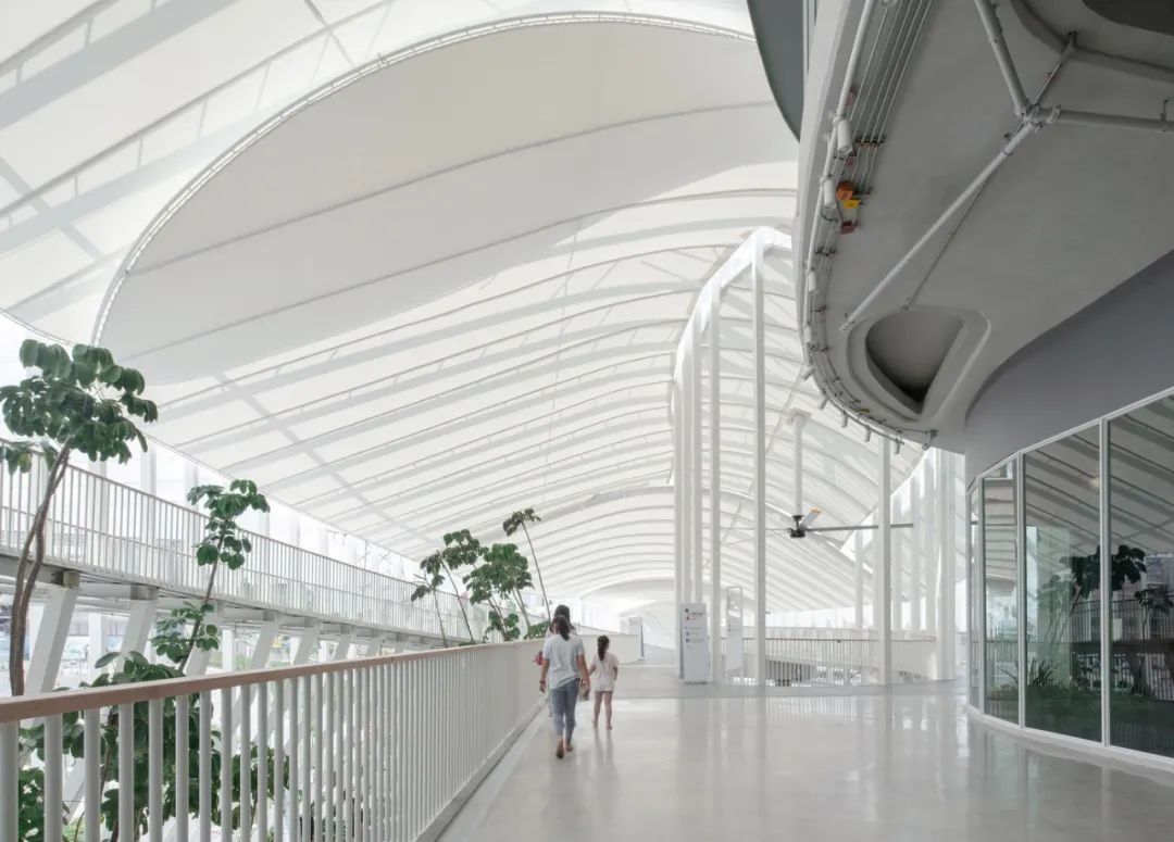 Mega Food Walk位于曼谷Mega Bangna大型美食街内庭,是一个延伸的半户外扩展区。设计创造了一种新的方式来让人们体验不同层次的景观和商店。人们可以从购物中心较高的主要入口层进入较低水平的广场。这些通道对所有使用者都是友好的,有轻微的坡度,残疾人也可以使用。