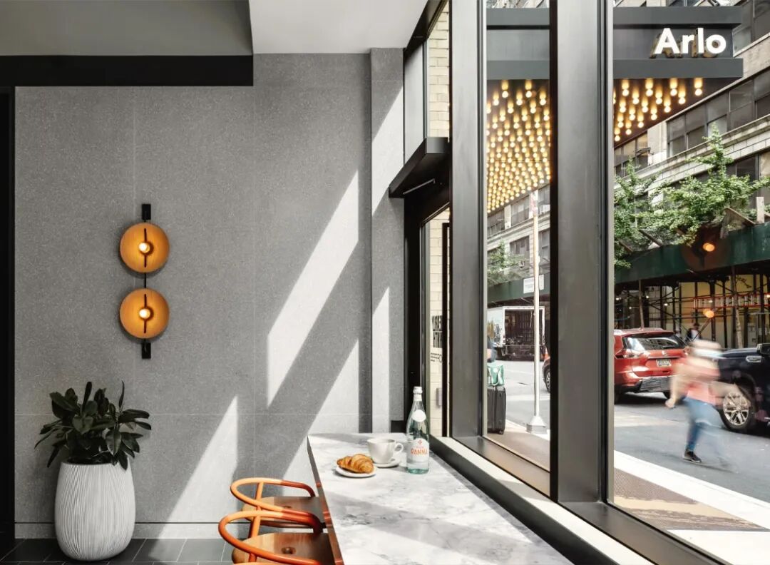 房地产投资及咨询集团 Quadrum Global ,旗下的 Arlo 酒店品牌,在纽约和迈阿密均设有分店,其中位于纽约 Midtown 曼哈顿服装区的分店,由 Marvel Architects 团队负责建筑设计,知名设计师 Meyer Davis 负责室内设计。