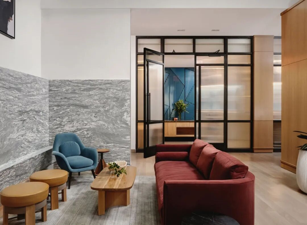 Meyer Davis 的联合创始人 Gray Davis 和项目负责人 Shannon Senyk 从酒店所在的曼哈顿服装区寻找灵感,以微妙和戏剧性的方式向这座城市的时尚中心致敬。