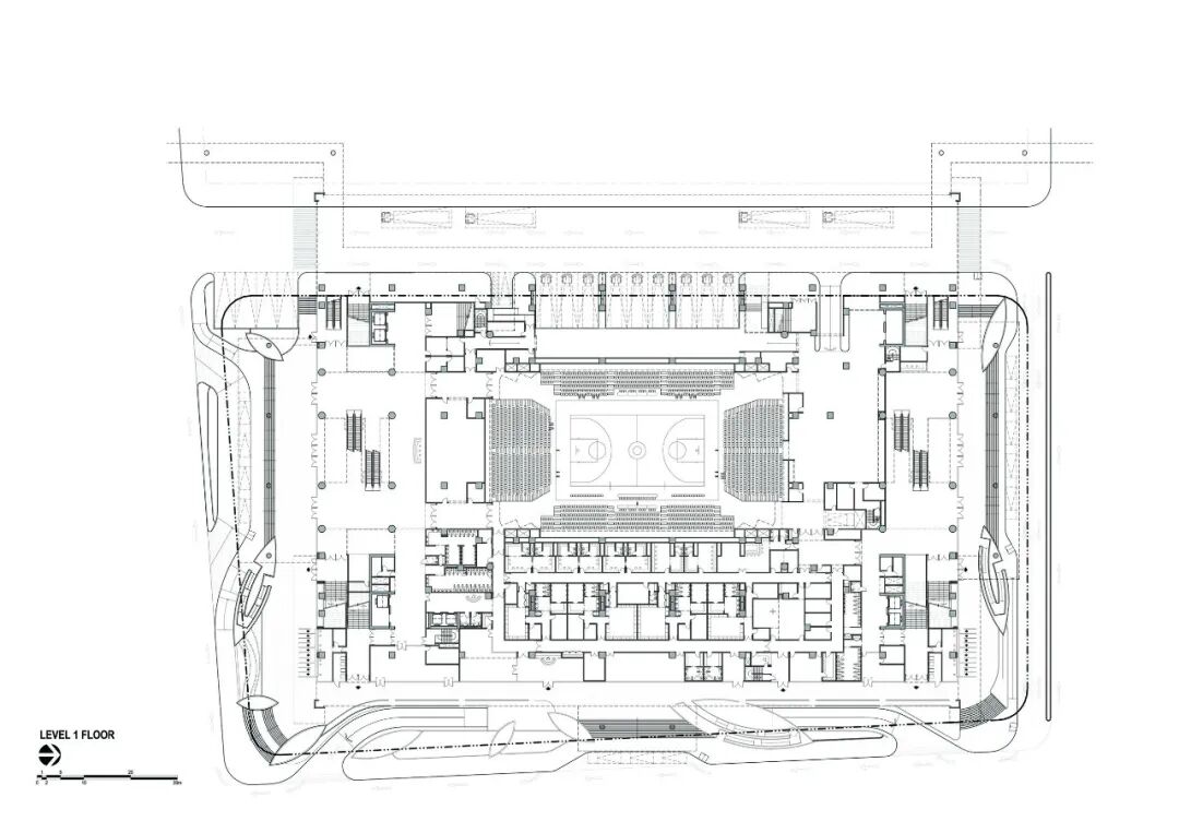 场馆内设置了一系列VIP空间与功能设施,包括新闻发布室、多媒体室、休息室、名人更衣室、体育赛事的团队休息室等。后台、更衣区和新闻区位于底层,而后勤区和行政区位于夹层。