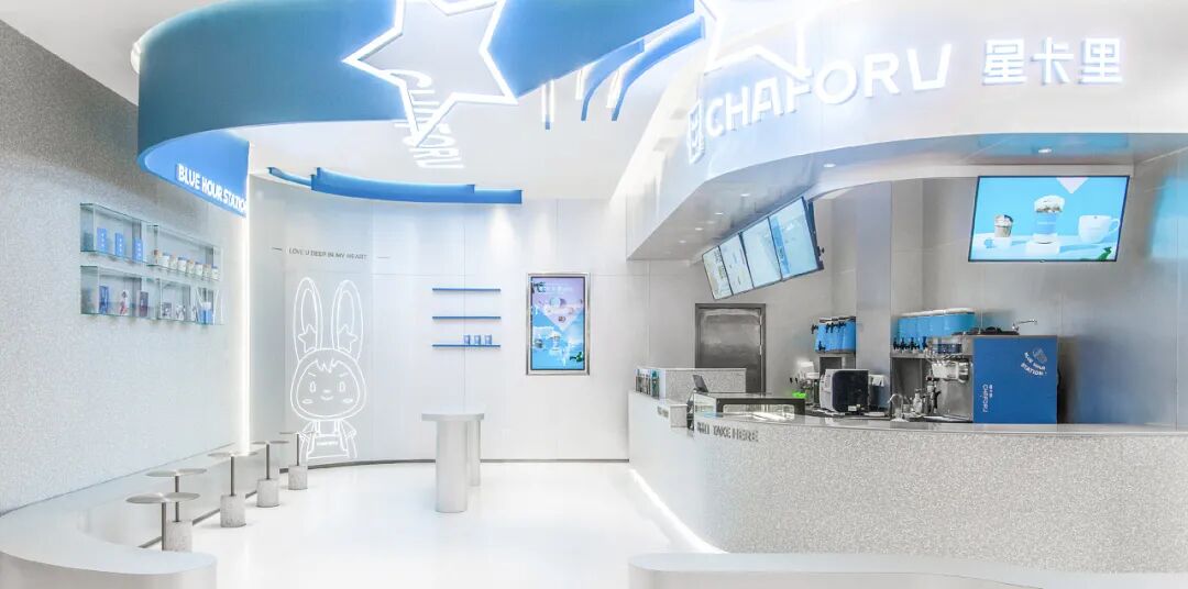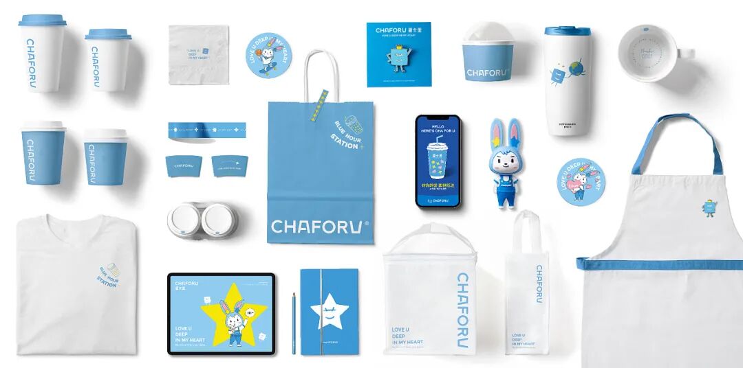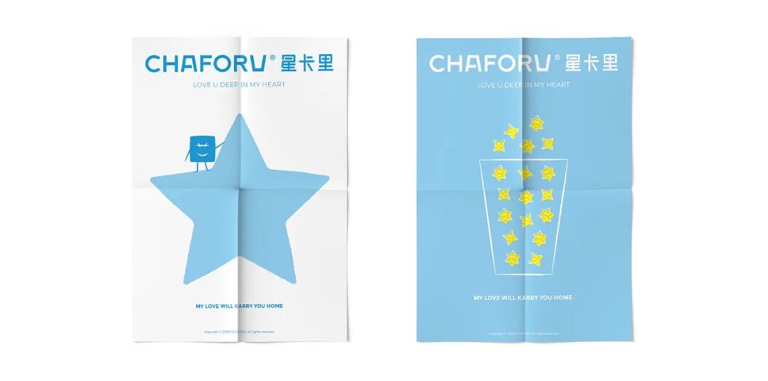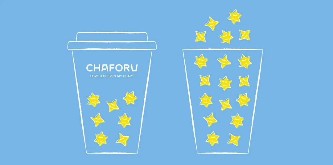 整个品牌提取“A”和“U”进行强化设计,轮廓形状来源于代表品牌属性的奶茶杯,为整体增添一分趣味性的同时,自然形成视觉印记。字体落笔处的圆角设计使得整体logo更具亲和力;稍粗的线条,也展示出对品牌认真、专业的态度。人们喜欢用蓝天白云象征好心情,星卡里选用天蓝色作为品牌识别色,代表品牌希望用一杯甜蜜的奶茶带给大家美好的时光。黄色作为辅助色,是透过树枝的阳光加入一丝温暖,也是满天繁星加入一丝希望,代表了星卡里与大家一起成长一起前行的一点一滴,将奶茶杯拟人化,作为LOGO的手绘图形,设计出灵动多样的动作造型,代表了不同的心情,不同的状态,方便应用在物料当中。