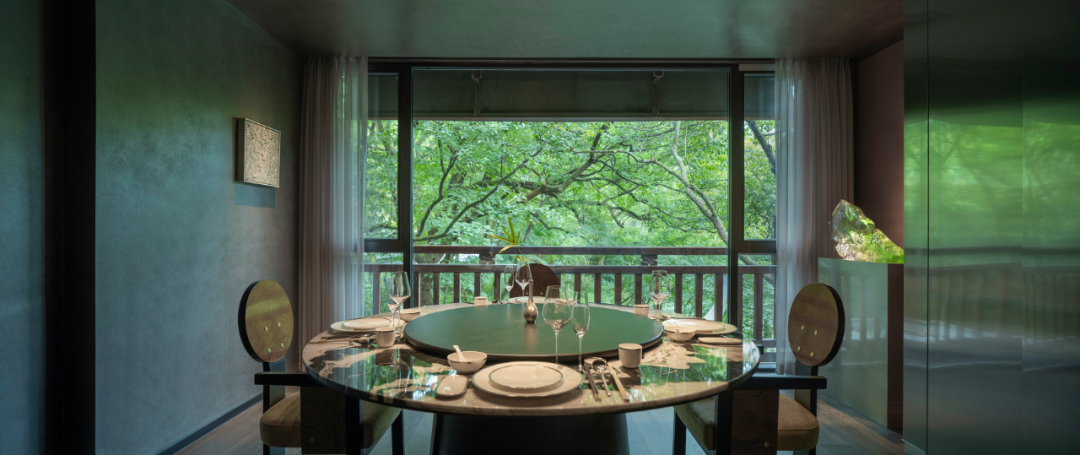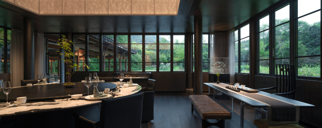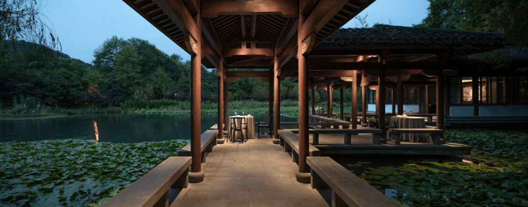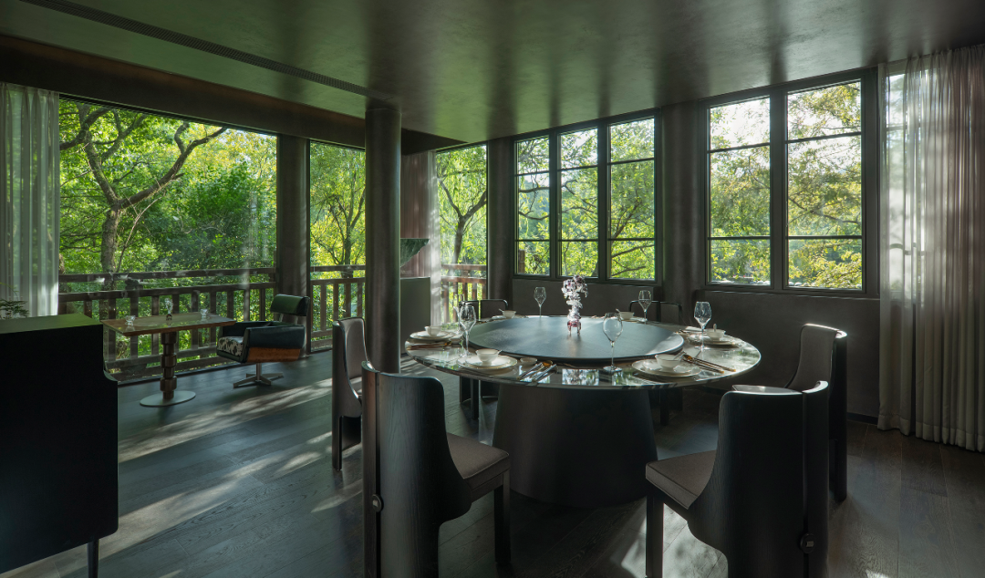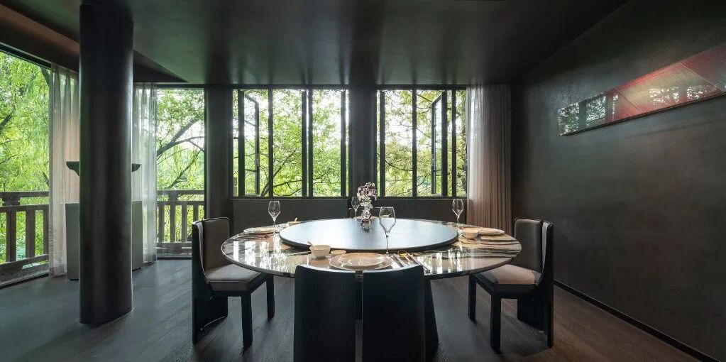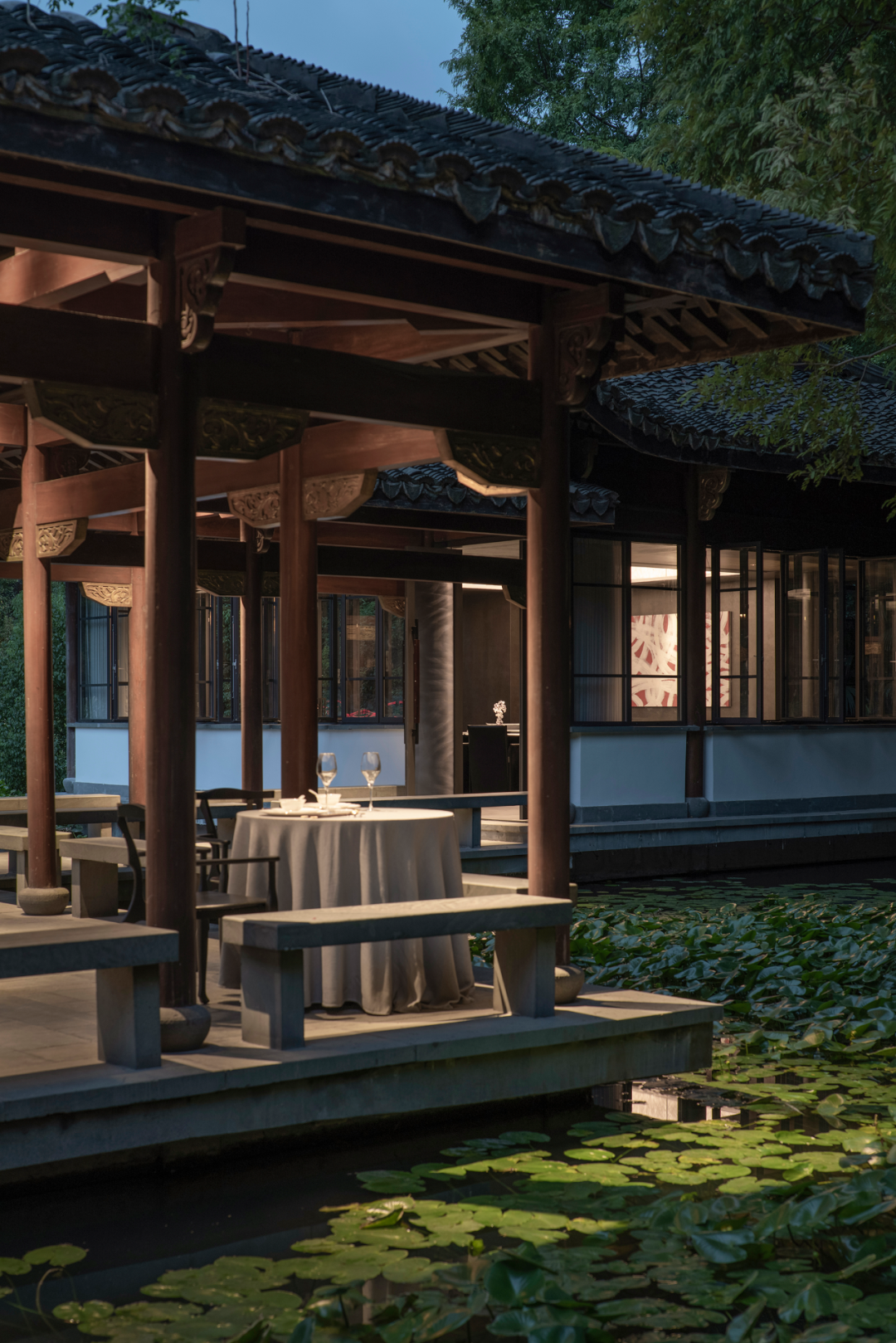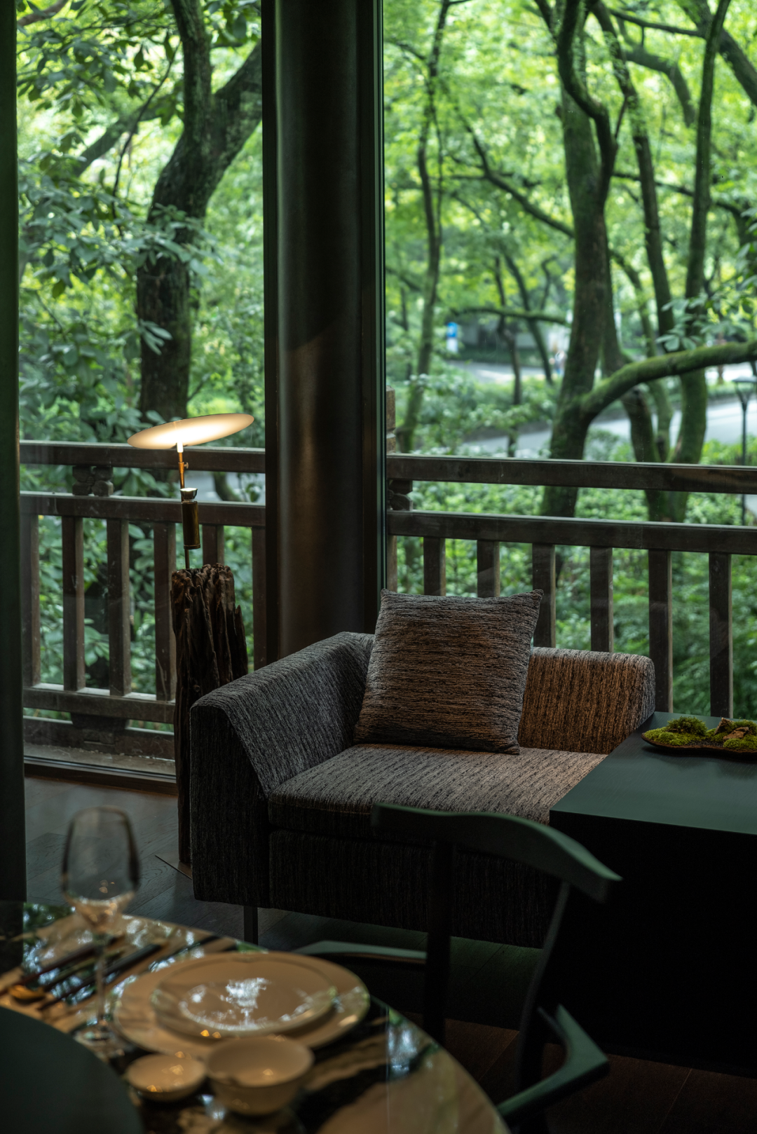在这样一片曲径通幽处,空间不再是简单承载日常的建筑形式。这里有着深入杭州骨子里的那一份风雅,脱离尘世,与三俩好友,酌一杯美酒,享精致美食。