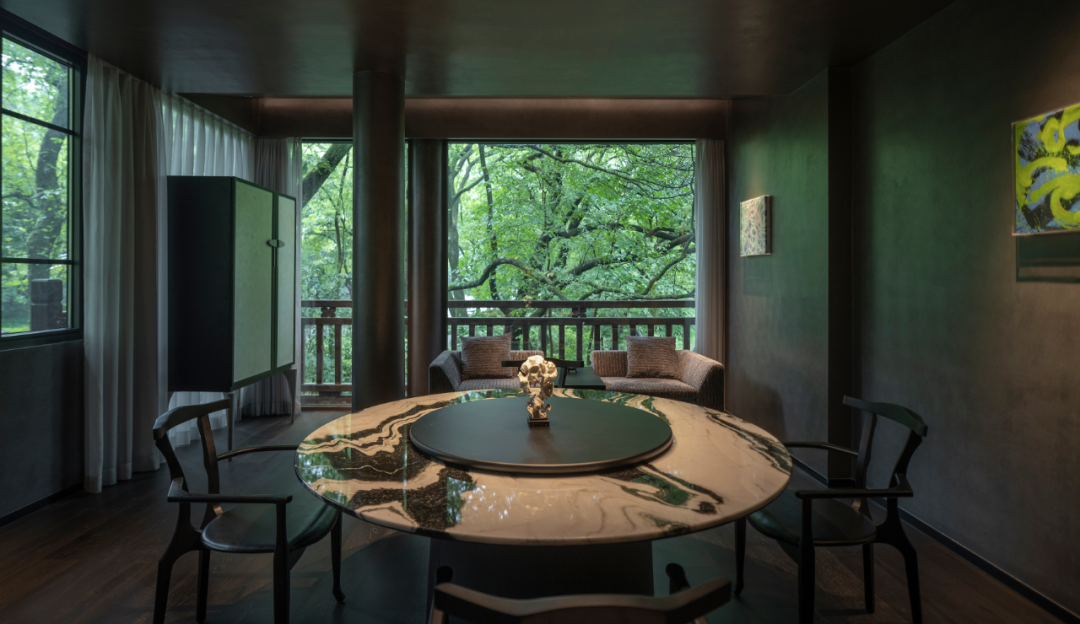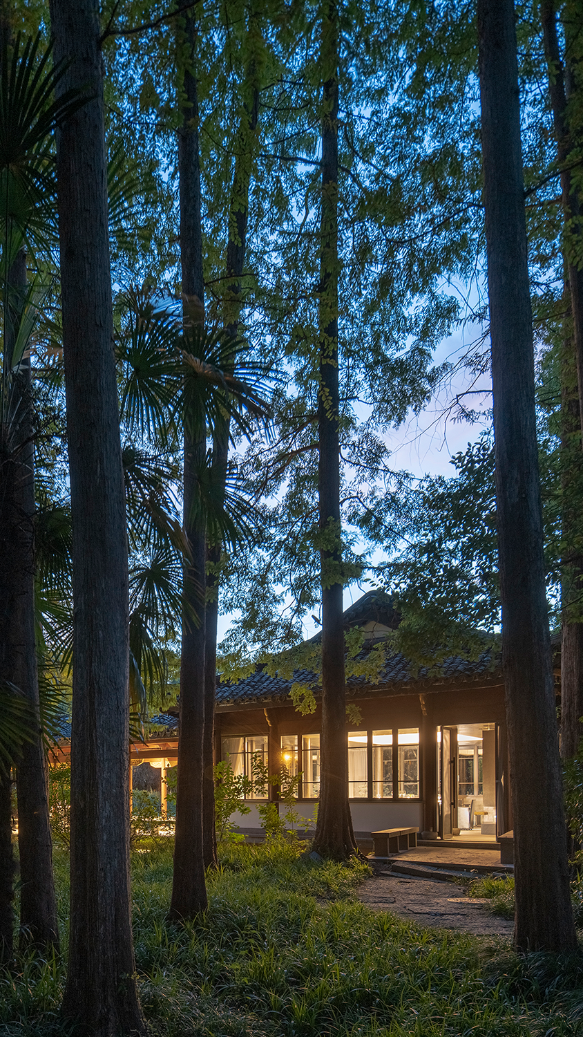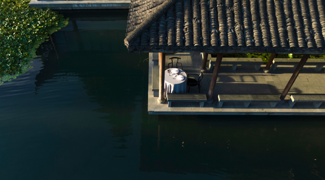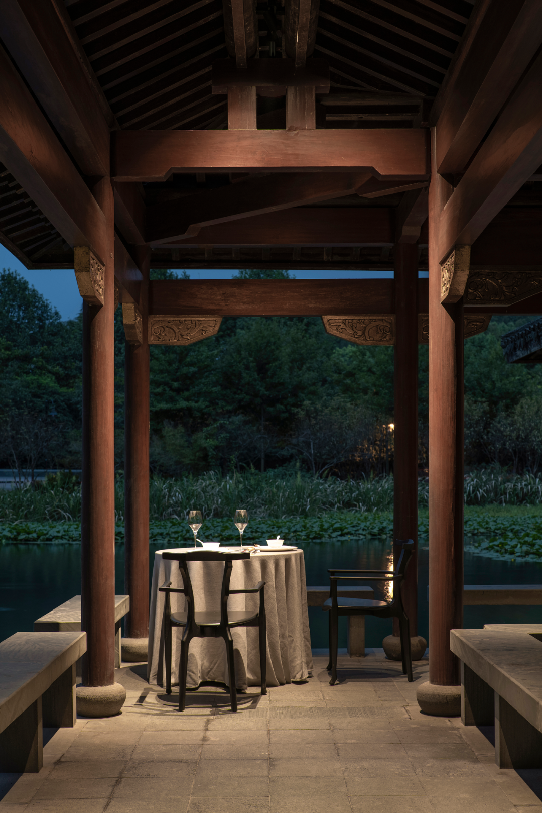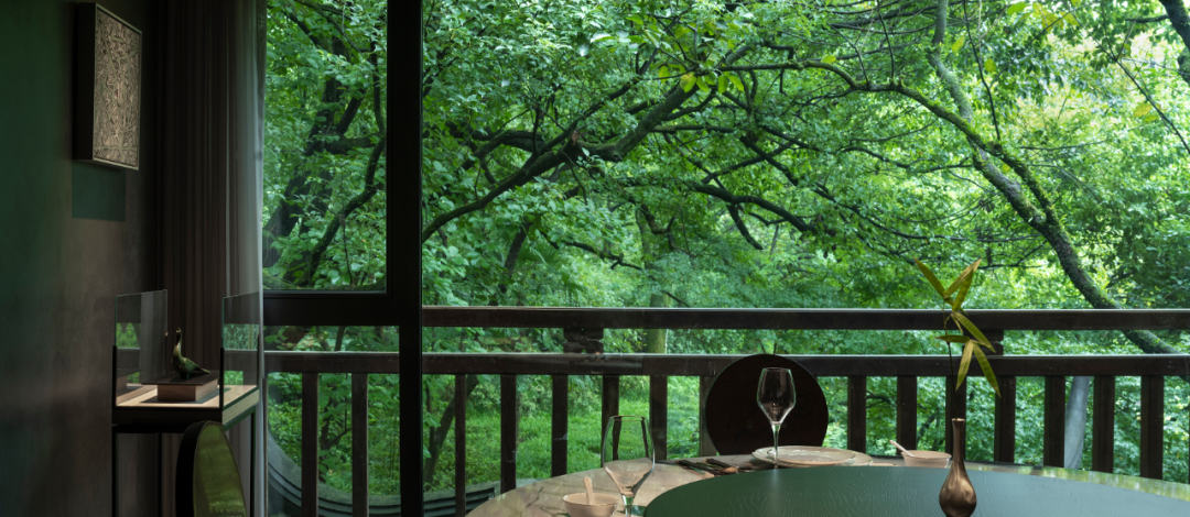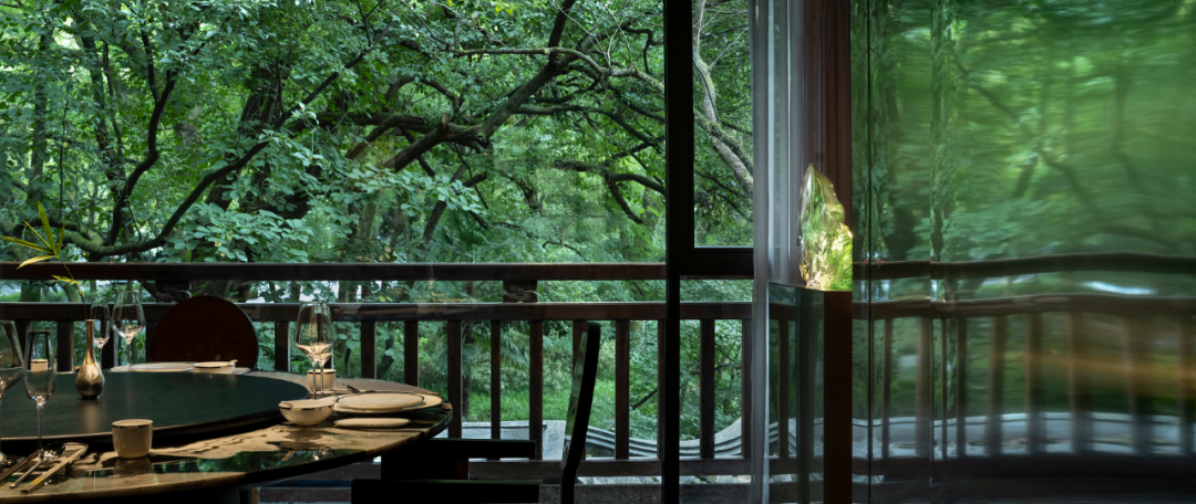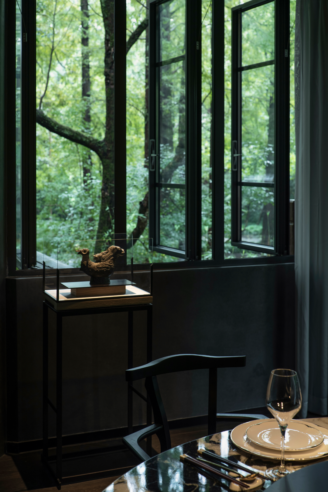 在这样一片曲径通幽处,空间不再是简单承载日常的建筑形式。这里有着深入杭州骨子里的那一份风雅,脱离尘世,与三俩好友,酌一杯美酒,享精致美食。