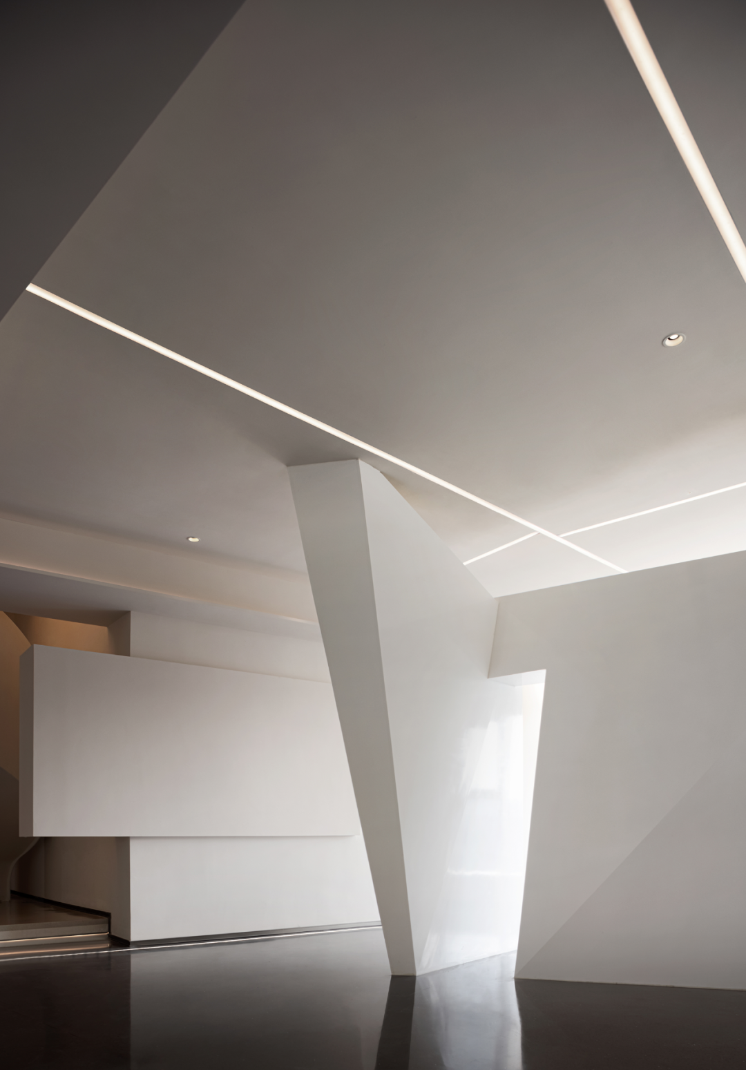 Light is the soul of architecture, and architecture is a container for capturing light. The complex buildings outside the windows are blocked, excessive sunlight is filtered, and natural light suitable for receiving guests is formed.The pure white gives the space a strong sense of extension. Natural light penetrates the glass and flows freely in the space. The formed geometric light spots echo the interlaced lines of the structure, giving new life.
