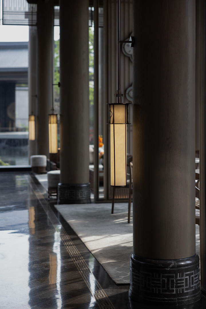 光线透过灯罩花纹的细节在空间里自由蔓延,赋予空间更强的层次感,使之空间具有张力。