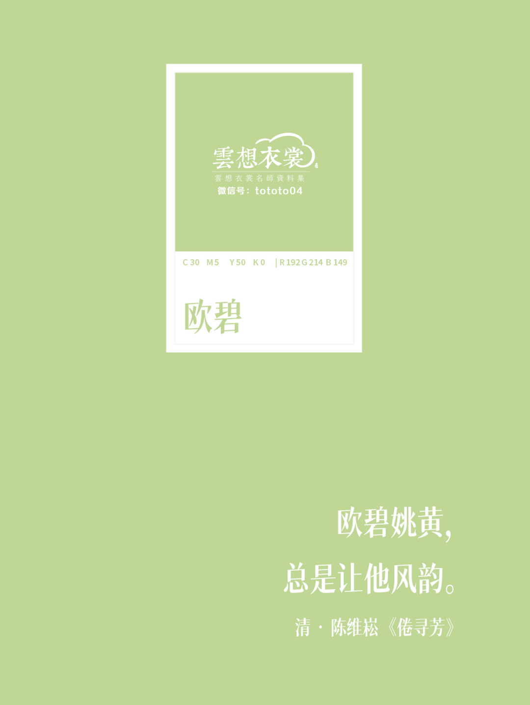【色值】:C: 30 M:5 Y:50 K:0 | R:192 G:214 B:149