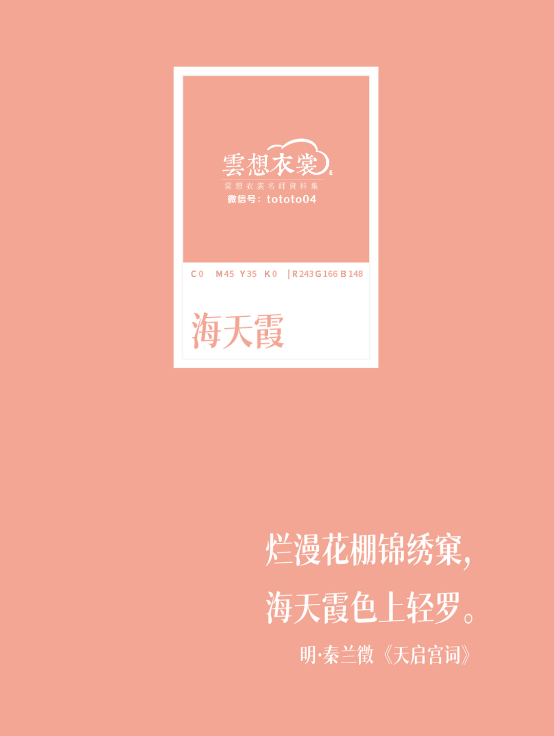 【色值】:C: 0 M:45 Y:35 K:0 | R:243 G:166 B:148