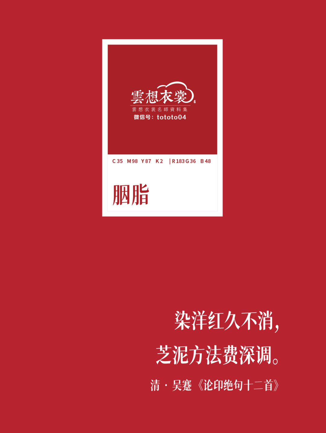 【配诗】:清•吴蹇《论印绝句十二首》染洋红久不消, 芝泥方法费深调。