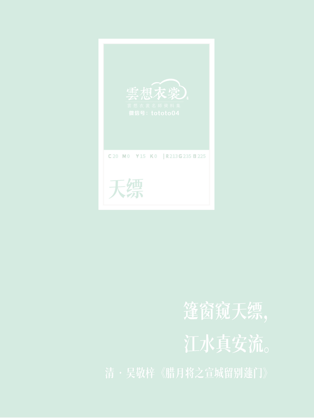 【色值】:C:20 M:0 Y:15 K:0 | R:213 G:235 B:225