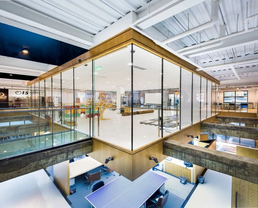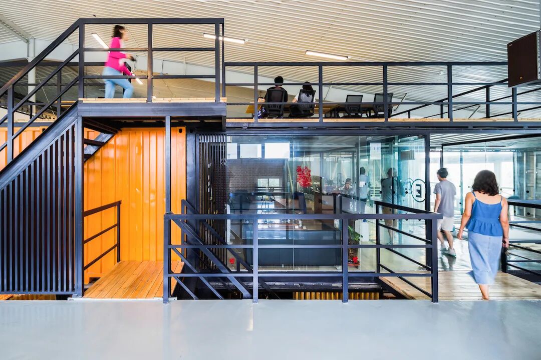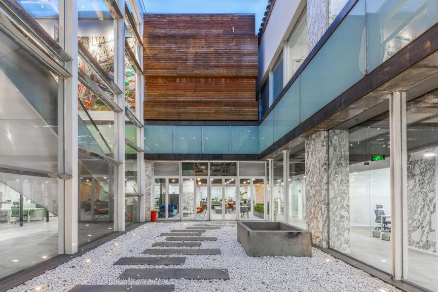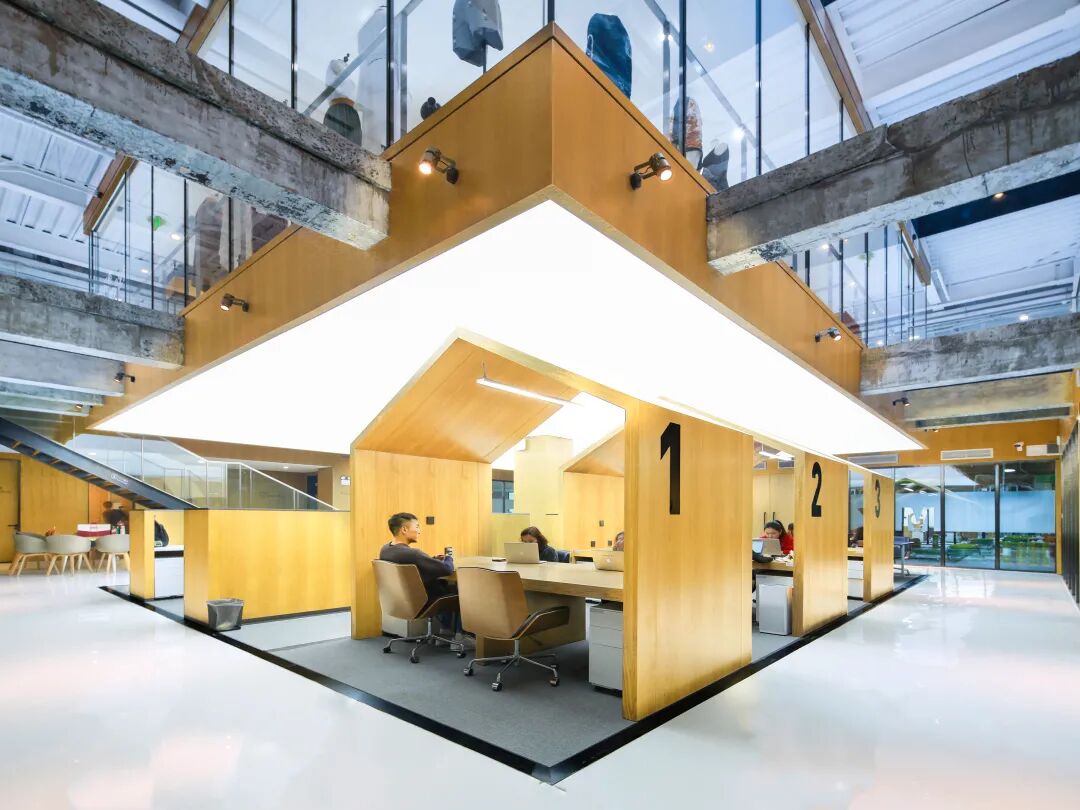 我们为了让整个业态上更丰富一些,相当于整体改造的,在这里面做了很多场景。包括有讨论的地方,有图书馆,有召开会议的地方,还有餐饮等等。这个应该算是一个很早期的城市更新项目。
