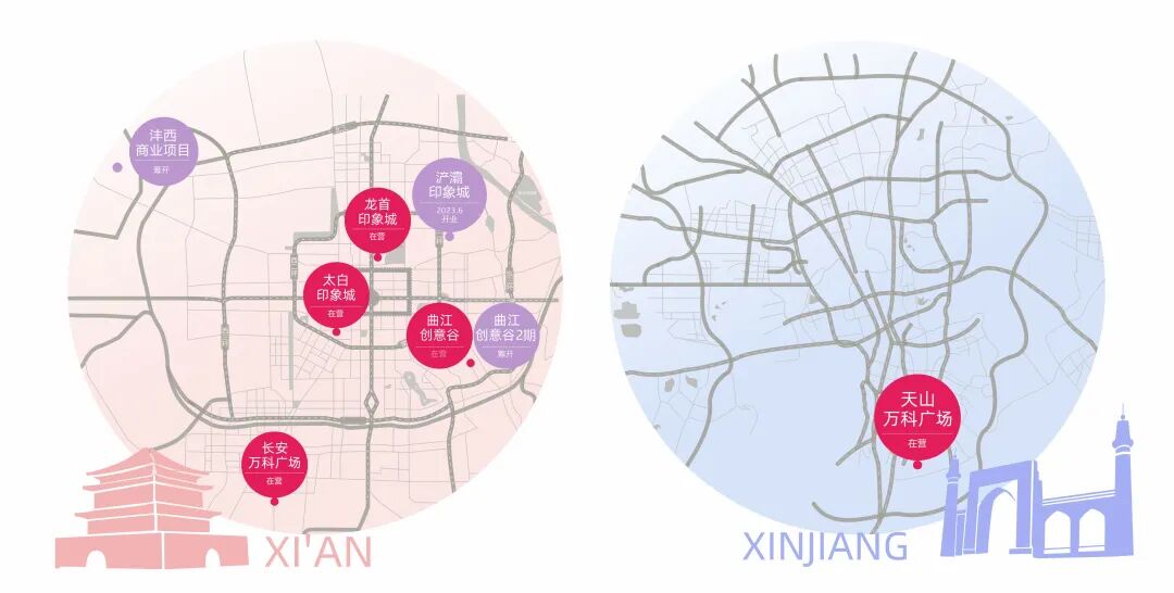 项目背靠万科「城系」住宅及 19 个优质社区,面向 15 所高校(包括西北政法大学、陕西师范大学、西北大学等知名院校),区域内学生、家庭客群约40万。