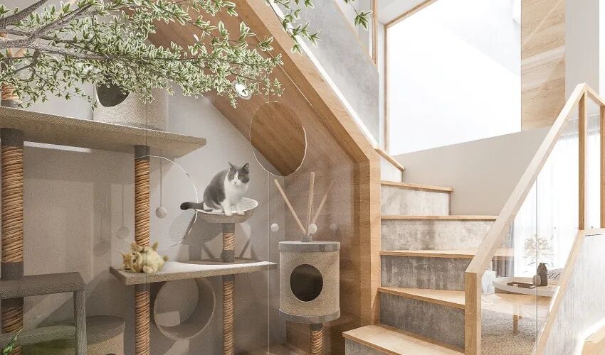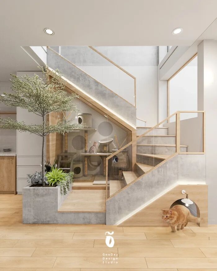 此案充分利用阶梯下的闲置空间,打造专属猫咪的异想乐园