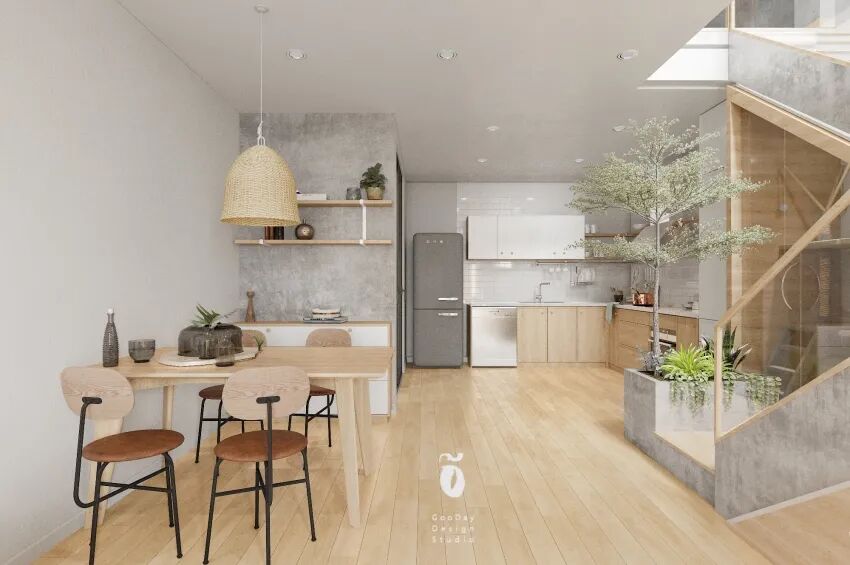 设计师以现代化的玻璃围栏、木作与水泥等元素
