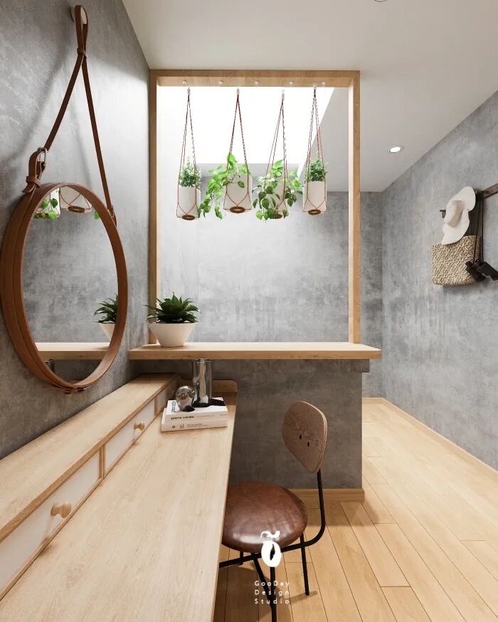在水泥框起的盆景里,形成有如室内小庭院的端景,增添雅兴绿意