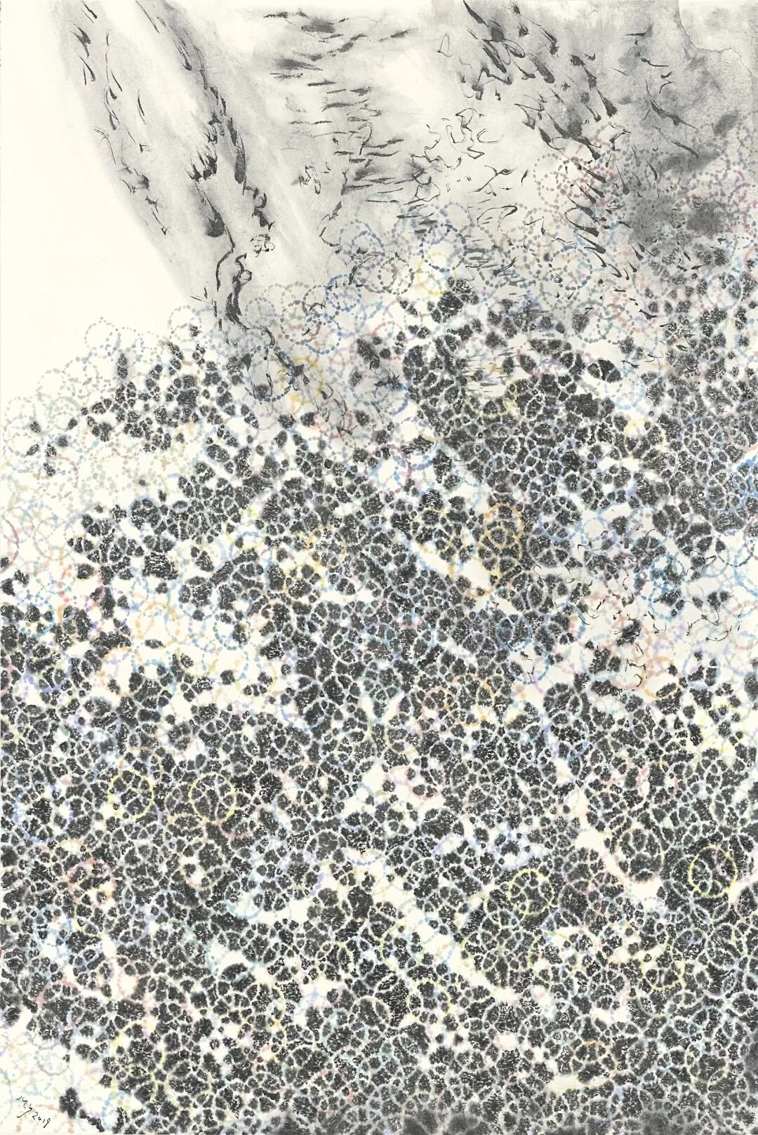 《无题》No.2 34.3cm×52cm 宣纸、水墨、水彩颜料 2018年—2019年