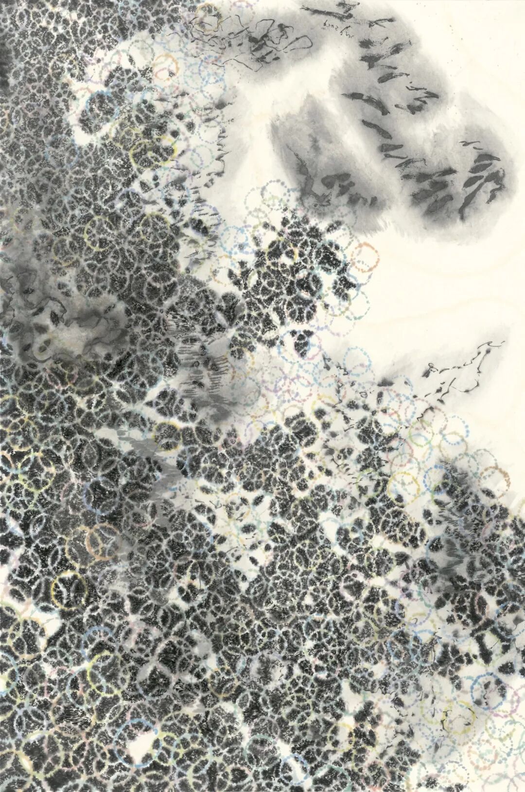 《无题》No.1 34.3cm×52cm 宣纸、水墨、水彩颜料 2018年—2019年
