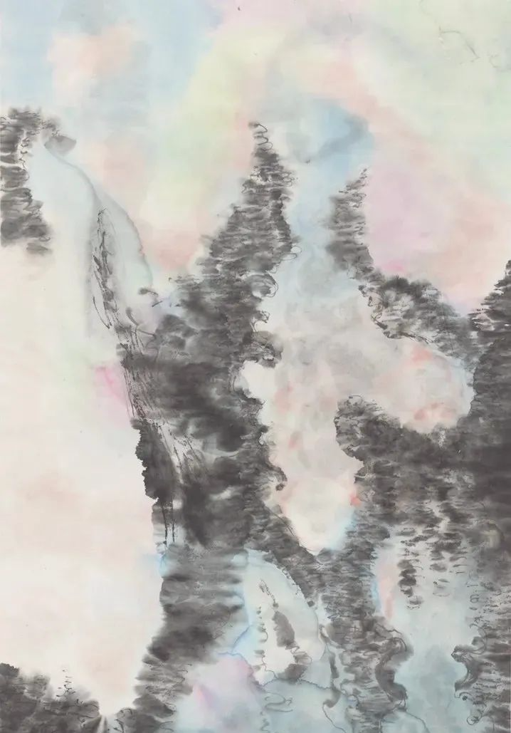 《无题》No.3 34.3cm×52cm 宣纸、水墨、水彩颜料 2020