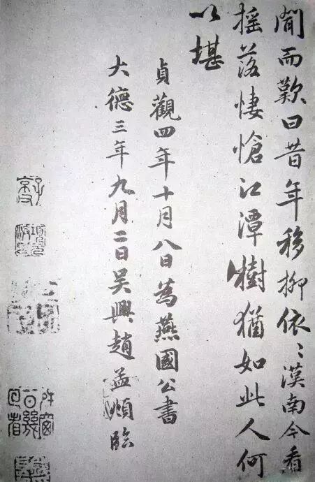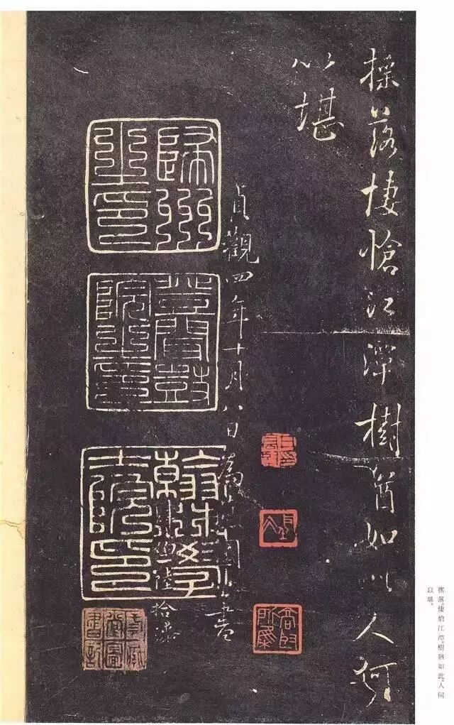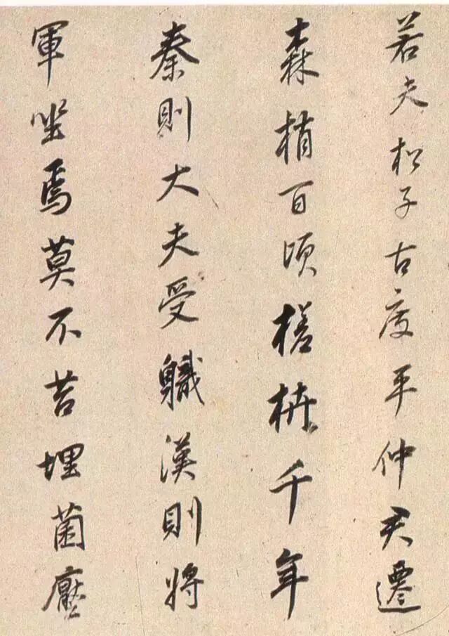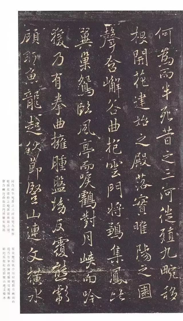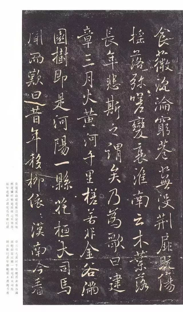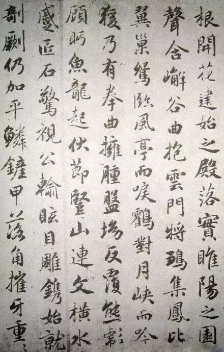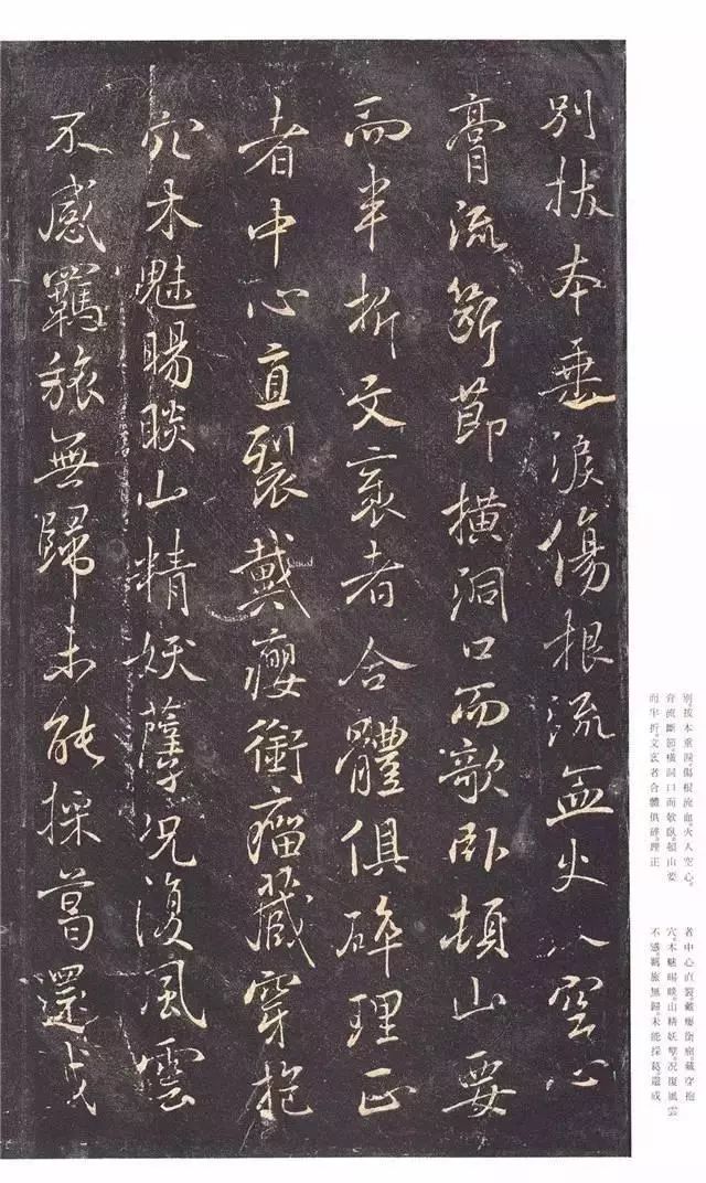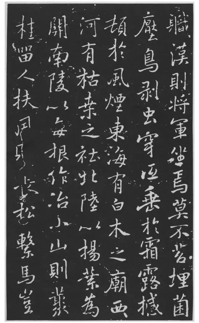 褚遂良《枯树赋》,仅有刻本传世。款题贞观四年书。共三十九行,计四百六十七字。书势倚正纵横,错综变化, 明王世贞评称:“ 掩映斐叠, 极有好致, …… 有美女婵娟, 不胜罗绮之态。”《 听雨楼帖》、《玉烟堂帖》、《 戏鸿堂帖》、《 邻苏园帖 》等均收入, 而以《听雨楼帖》所刻为精。又,元代赵孟頫有墨迹临本传世。明代周天球称:“整密秀润, 不少露北海姿态,亦尽气为褚敌者。”见《支那南画大成.题跋集》。
