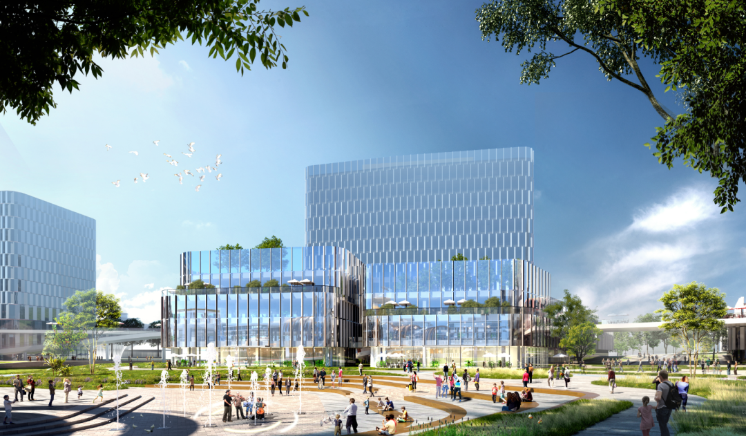 心型桥及立体开放式空间形成城市界面上的视觉焦点,多层级多样化空间立体复合开发,打造多元化产业集合体,形成城市形象名片。