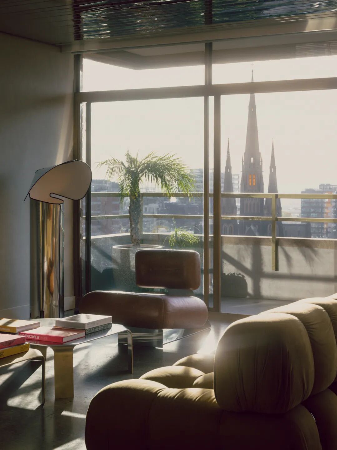 生活在这么高的地方当然有其好处;景色便是其中之一。在房子西面可以看到城市风光,在晴朗的日子里可以看到东面的丹德农山脉,当太阳升起和落下时,它在这个过程中点燃了一个不断发展的光的故事。这个故事不会白天就结束;到了晚上,随着墨尔本变成一座星空之城,房子变得充满霓虹色彩。